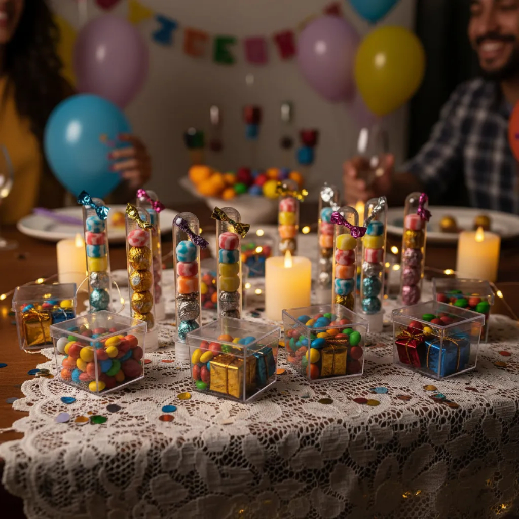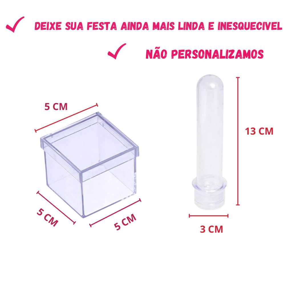 30 Tubetes 30 Caixinhas Acrílico Chá Revelação Lembrancinha