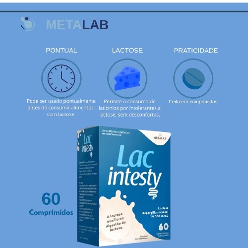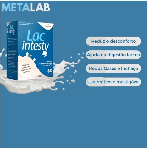 Enzima Lactase 10.000 60 CP mastigáveis Intolerância a lactose leite queijo LAC INTESTY Zero Açucar