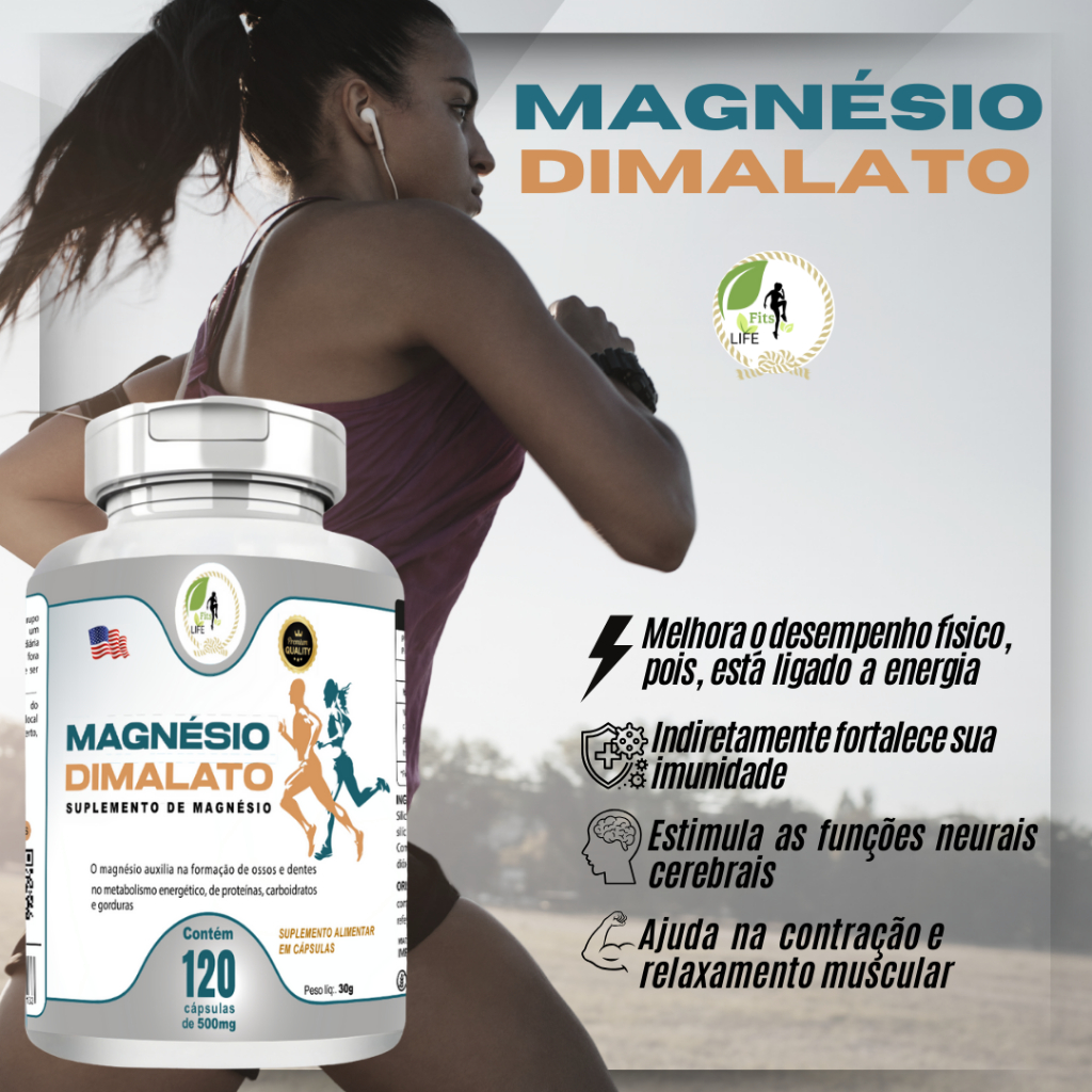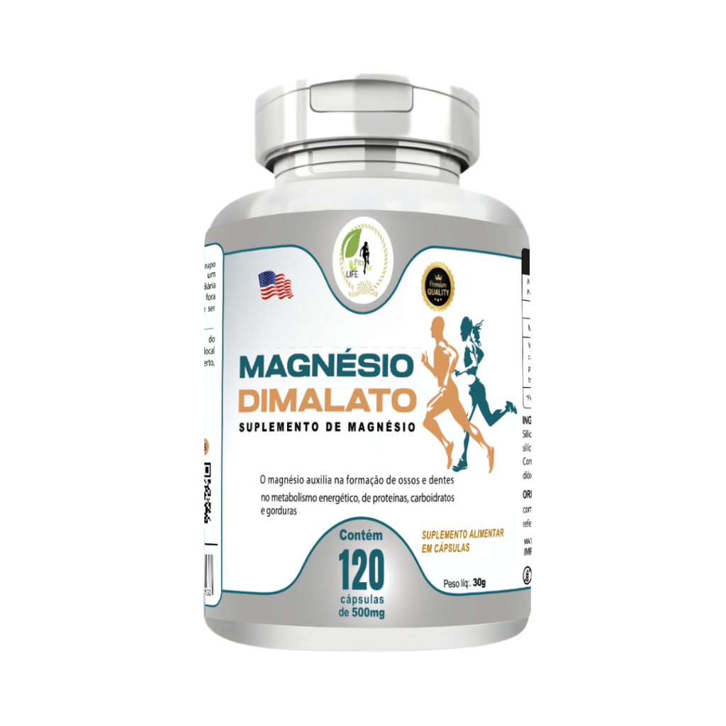 KIT C/5 Potes Magnésio Dimalato Puro 120 Cápsulas 500mg - Fits Life *
