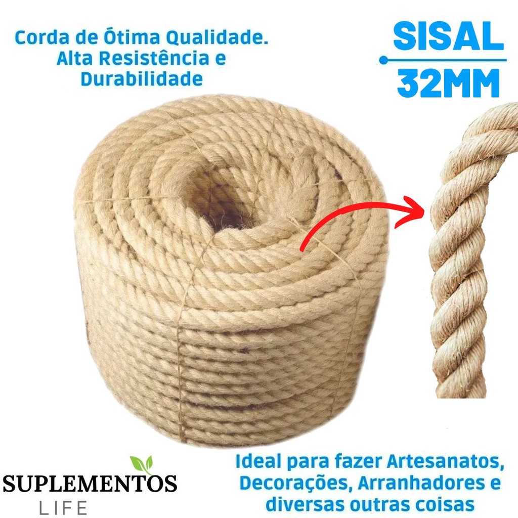 Corda De Sisal 32mm 10 Metros Reforçada Naval Decoração Exercício Escalada
