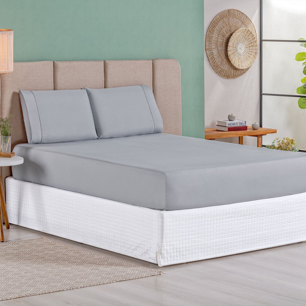 Jogo de Lençol Casal King 400 Fios Percal Suave Fronha Ponto Palito Toque Aveludado 3 Pçs