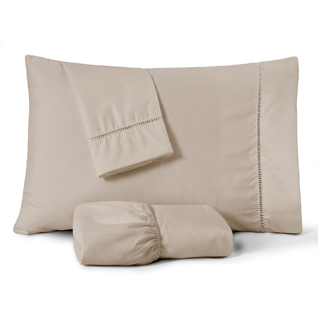 Jogo de Lençol Casal Queen 400 Fios Percal Suave Fronha Ponto Palito Toque Aveludado 3 Pçs
