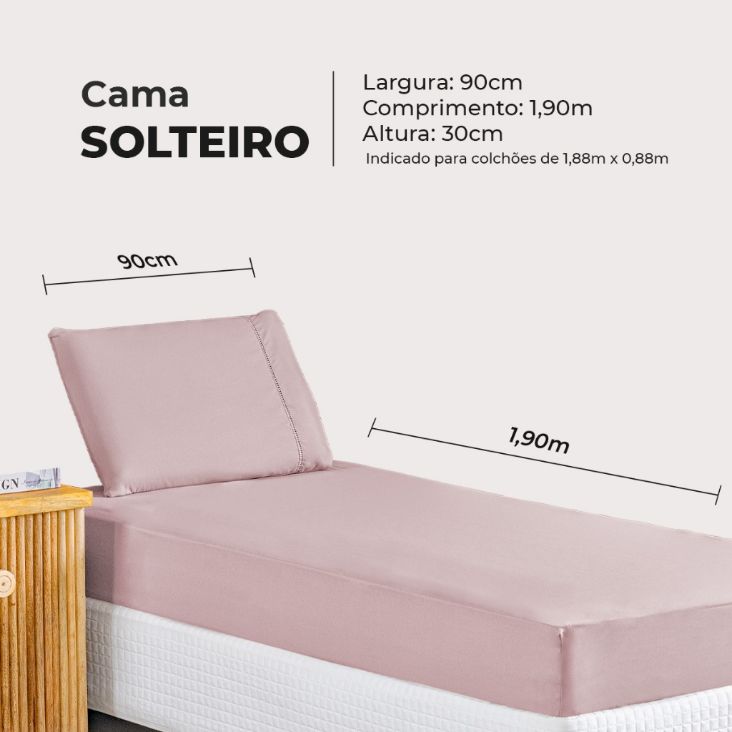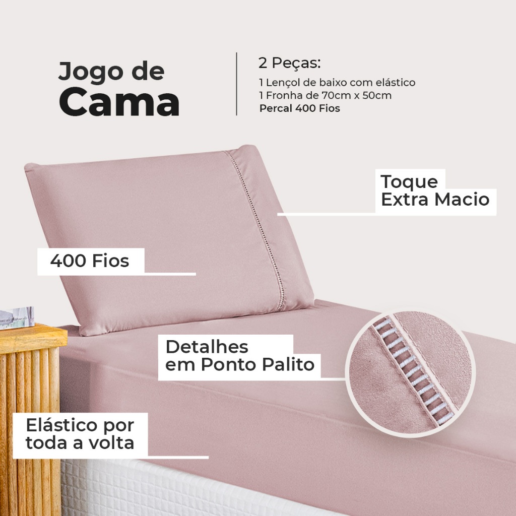 Jogo de Lençol Solteiro Percal 400 Fios Suave Fronha Ponto Palito Toque Aveludado 2 Pçs
