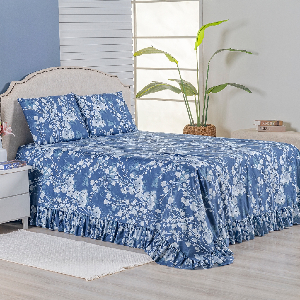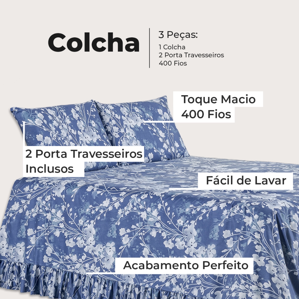 Kit Colcha Cobre Leito Casal Padrão 400 Fios Toque Macio 3 Peças com Porta Travesseiro