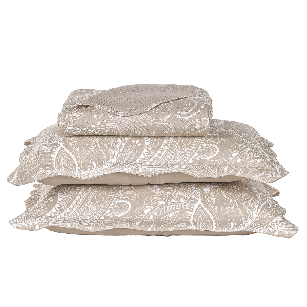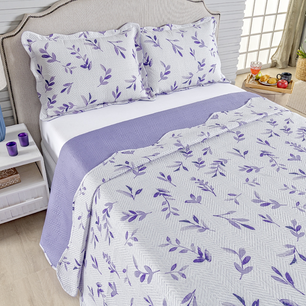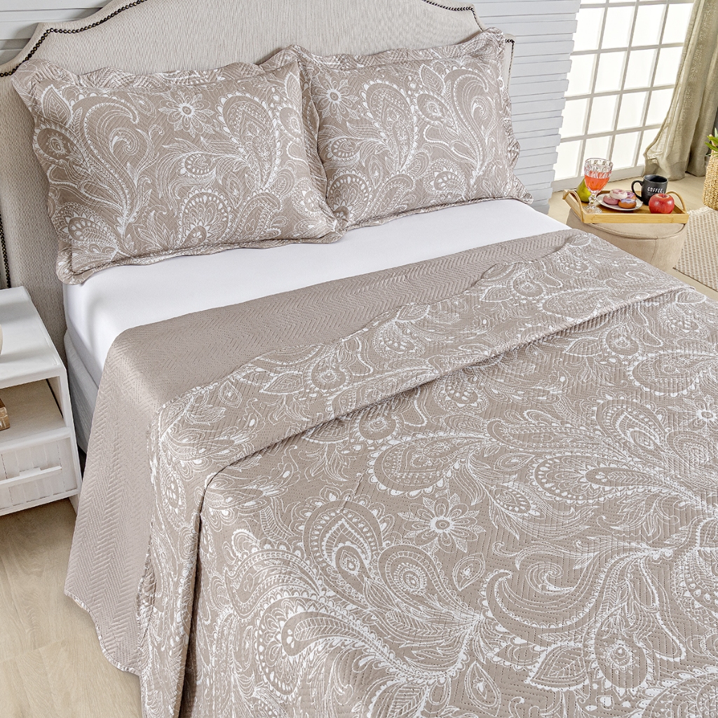Kit Cobre Leito Colcha Casal Bouti 3 Peças Dupla Face Estampada Porta Travesseiro Aba Americana