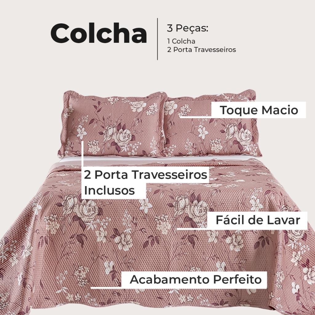 Kit Cobre Leito Colcha King Bouti 3 Peças Dupla Face Estampada Porta Travesseiro Aba Americana