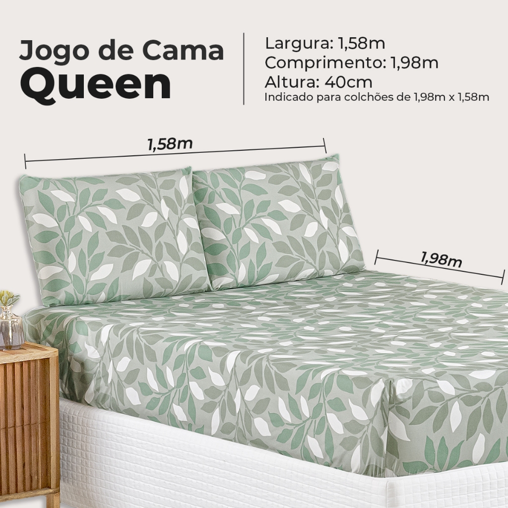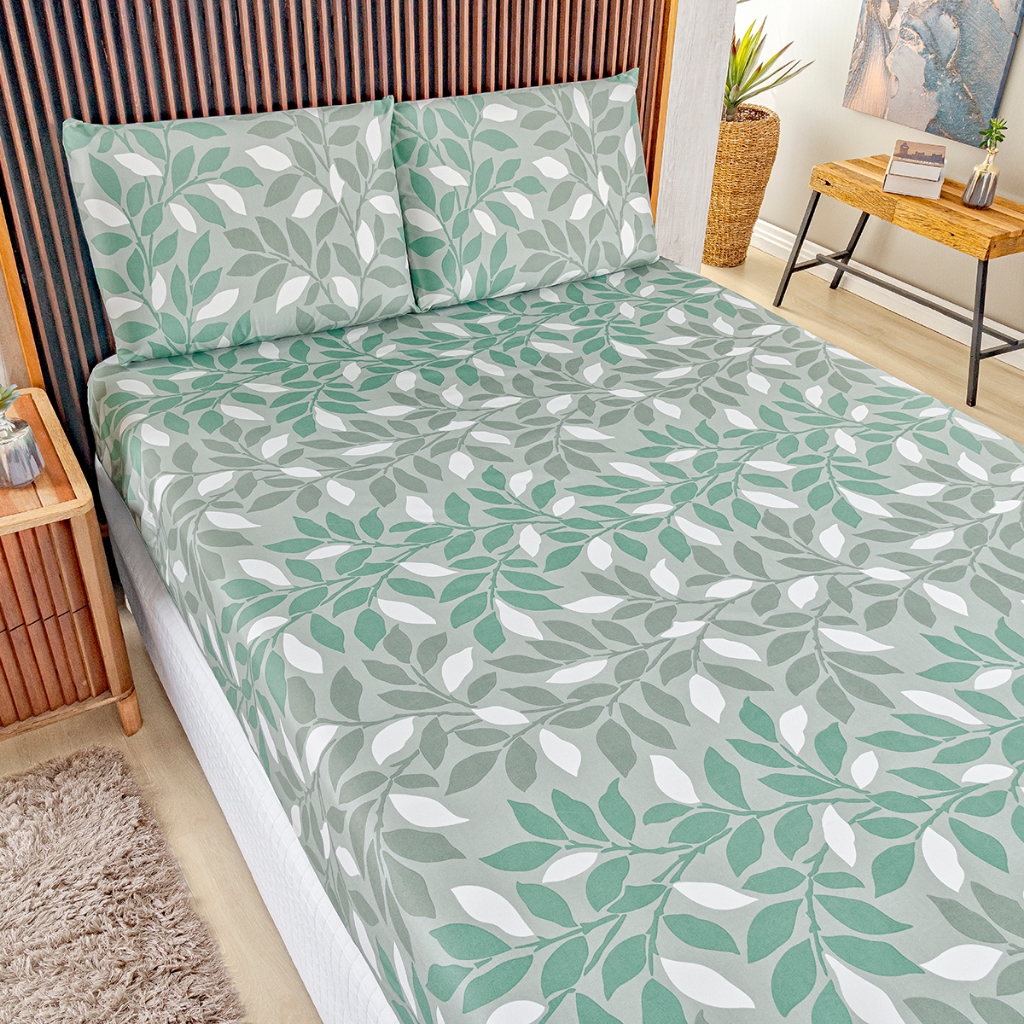 Jogo Lençol Queen Percal 400 Fios 3 Pçs Todo Estampado Macio e Toque Acetinado