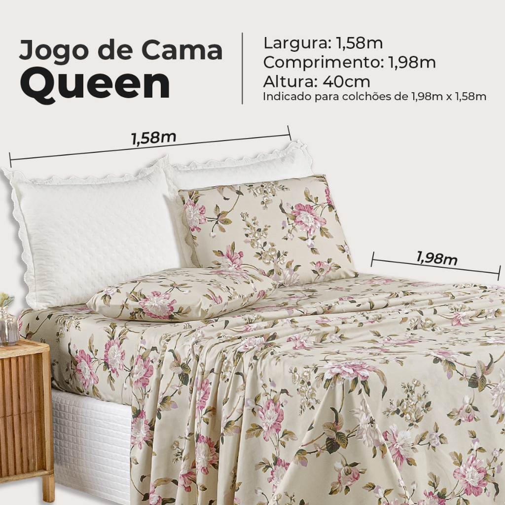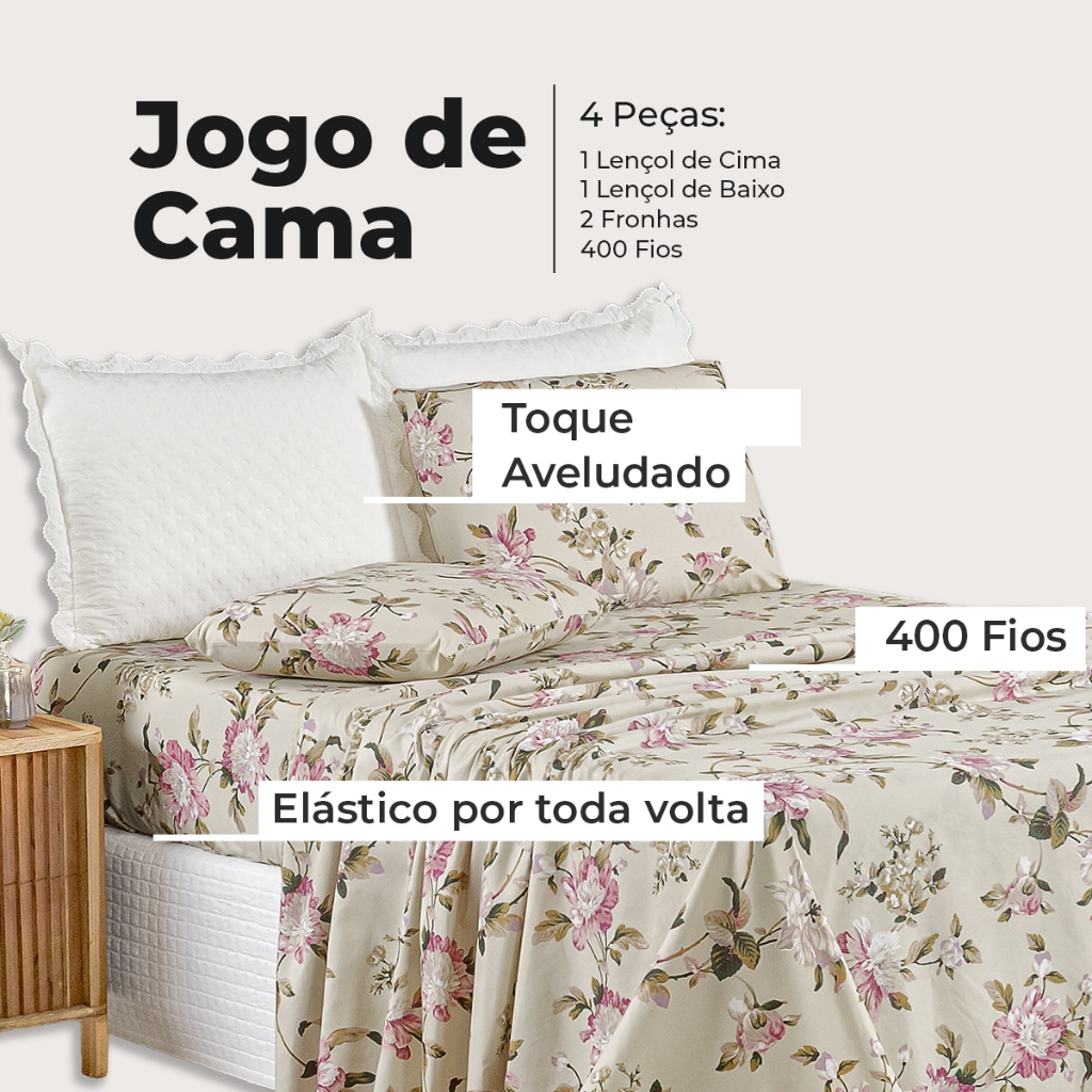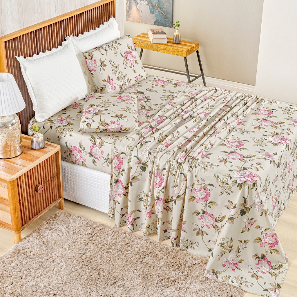 Jogo Lençol Queen Percal 400 Fios 4 Pçs Todo Estampado Macio e Toque Acetinado