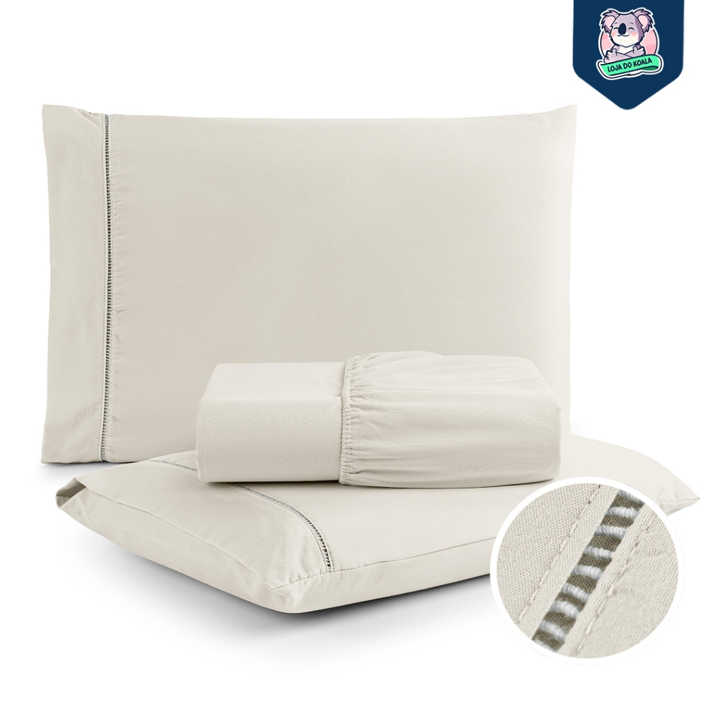 Jogo de Lençol Queen 400 Fios Percal Flex 3 Peças - Ultra Macio - Resistente - com Ponto Palito