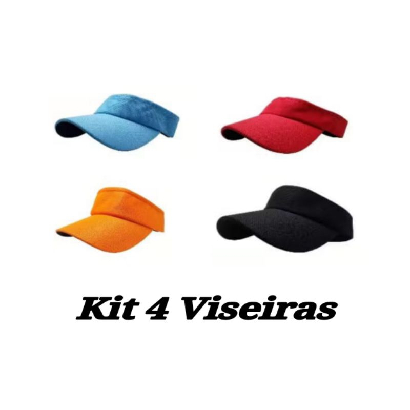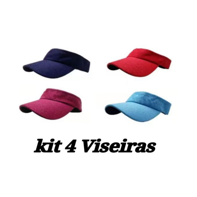 Kit 4 Viseiras Boné Dri Fit Lisa ajustável com Aba Curva Praia Piscina Corrida Verão Moda Tendência