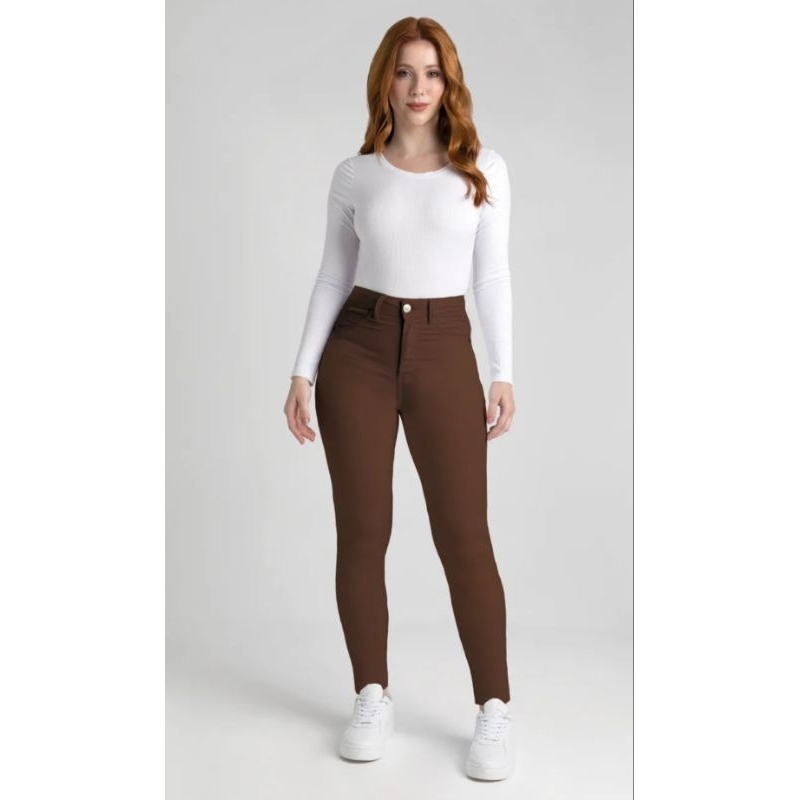 calca studio jeans marron fem com lycra skiny super confort brasil