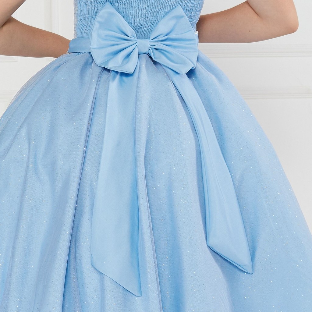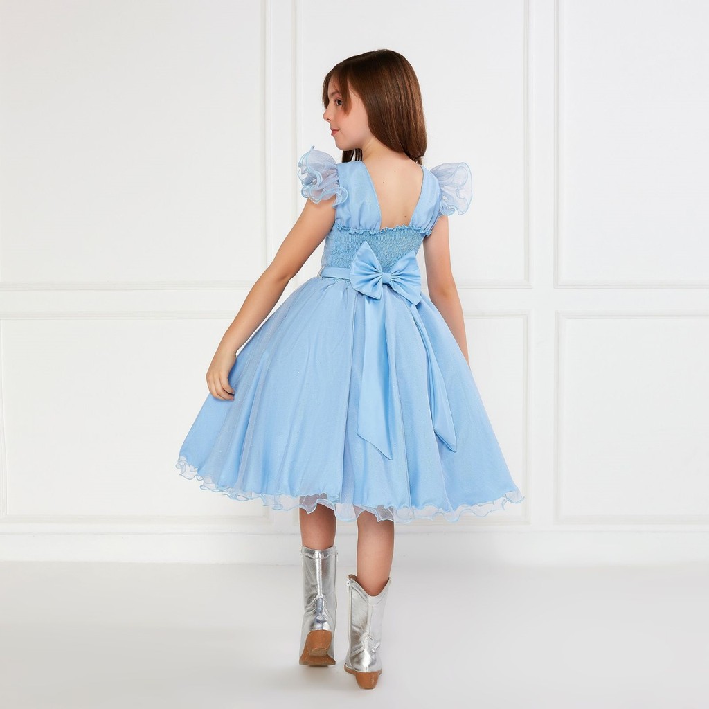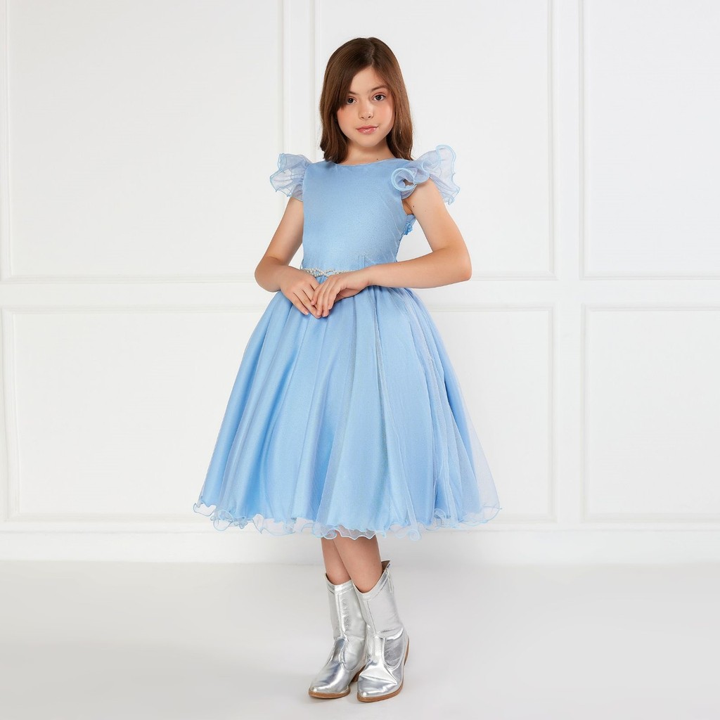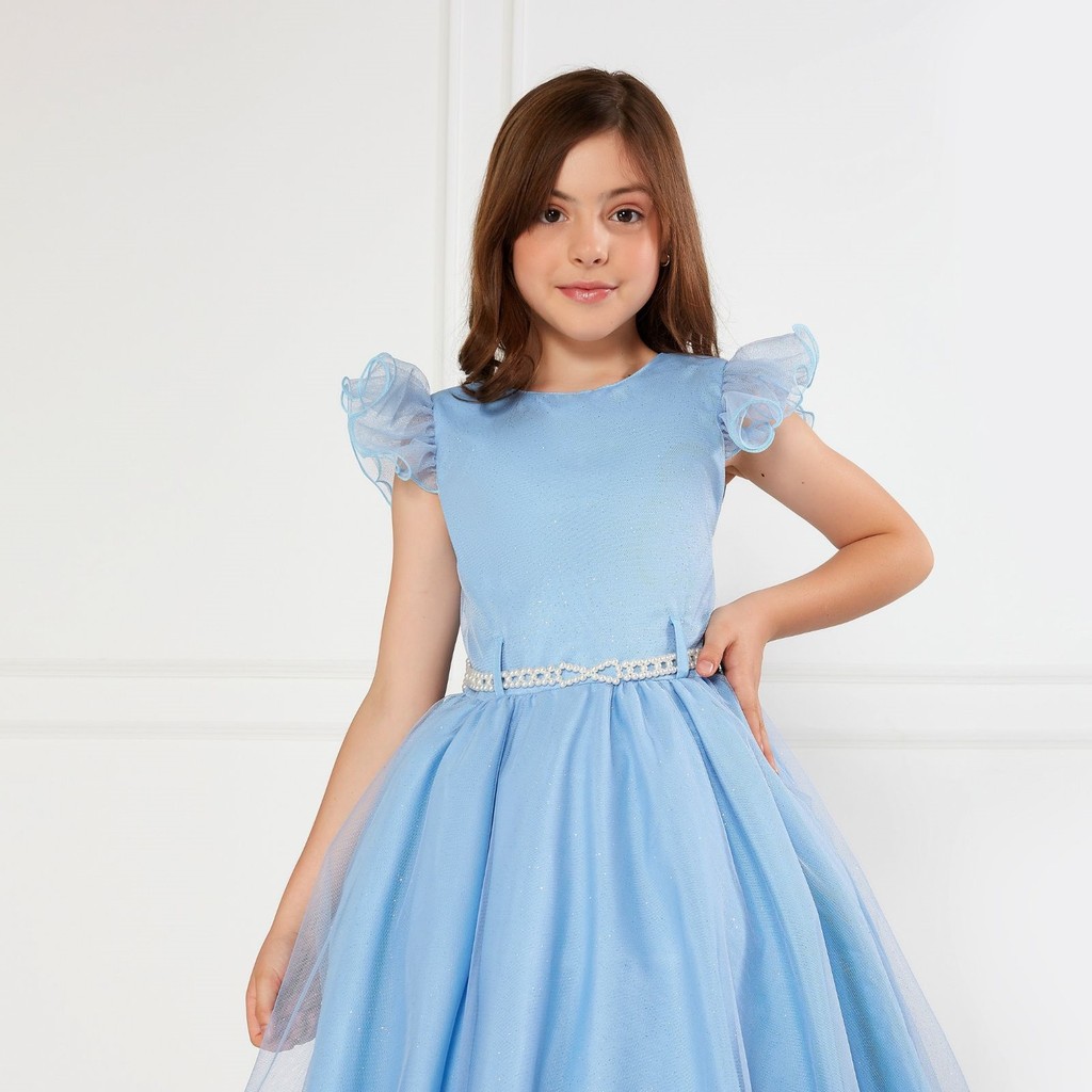 Vestido Glitter Azul Claro Manga Godê De Festa Infantil Rodado