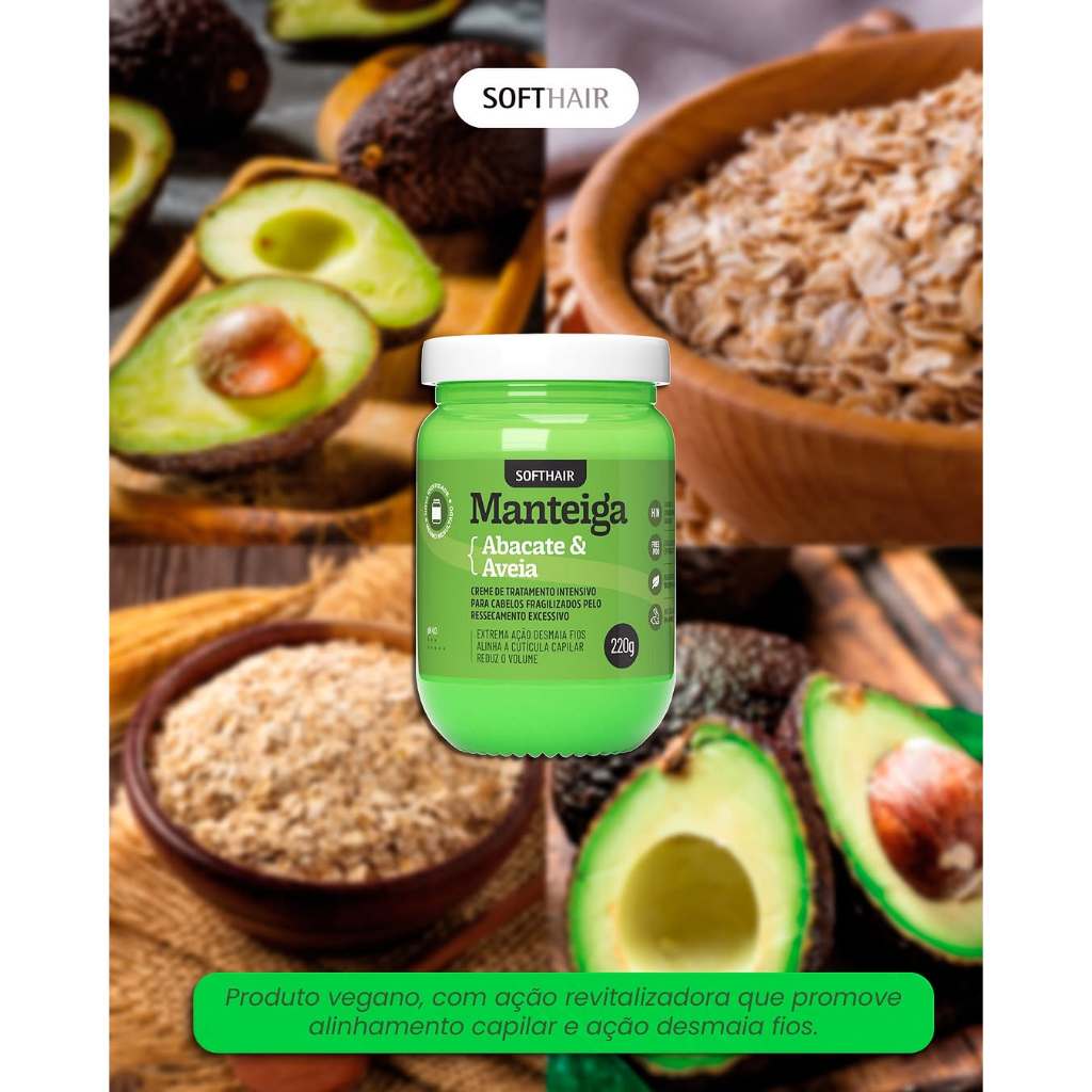 Kit 02un Manteigas Veganas de Abacate e Aveia 220ml