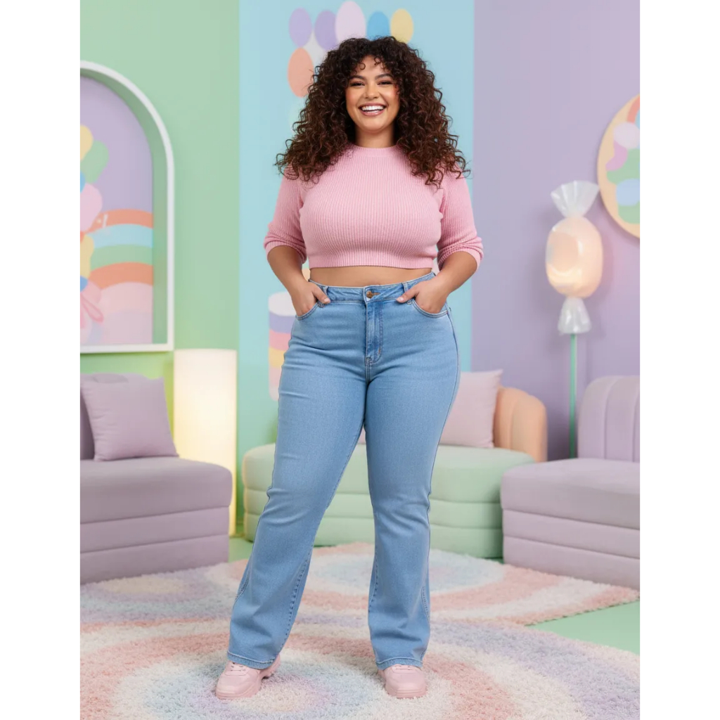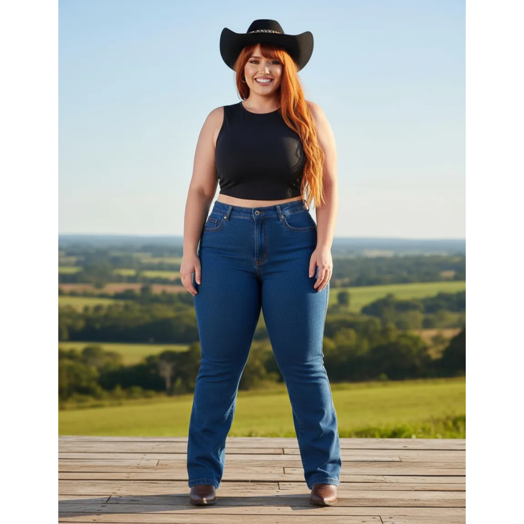 Calça Jeans Feminina Modelo Country Desing Básico Coll Jeans Barra Reta Boiadeira 34 ao 56 Lycra