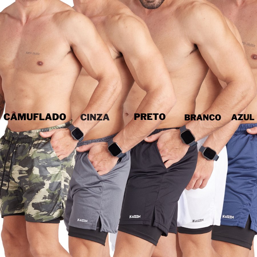kit promo semanal 5 bermuda 2 em 1 Dual pro fit