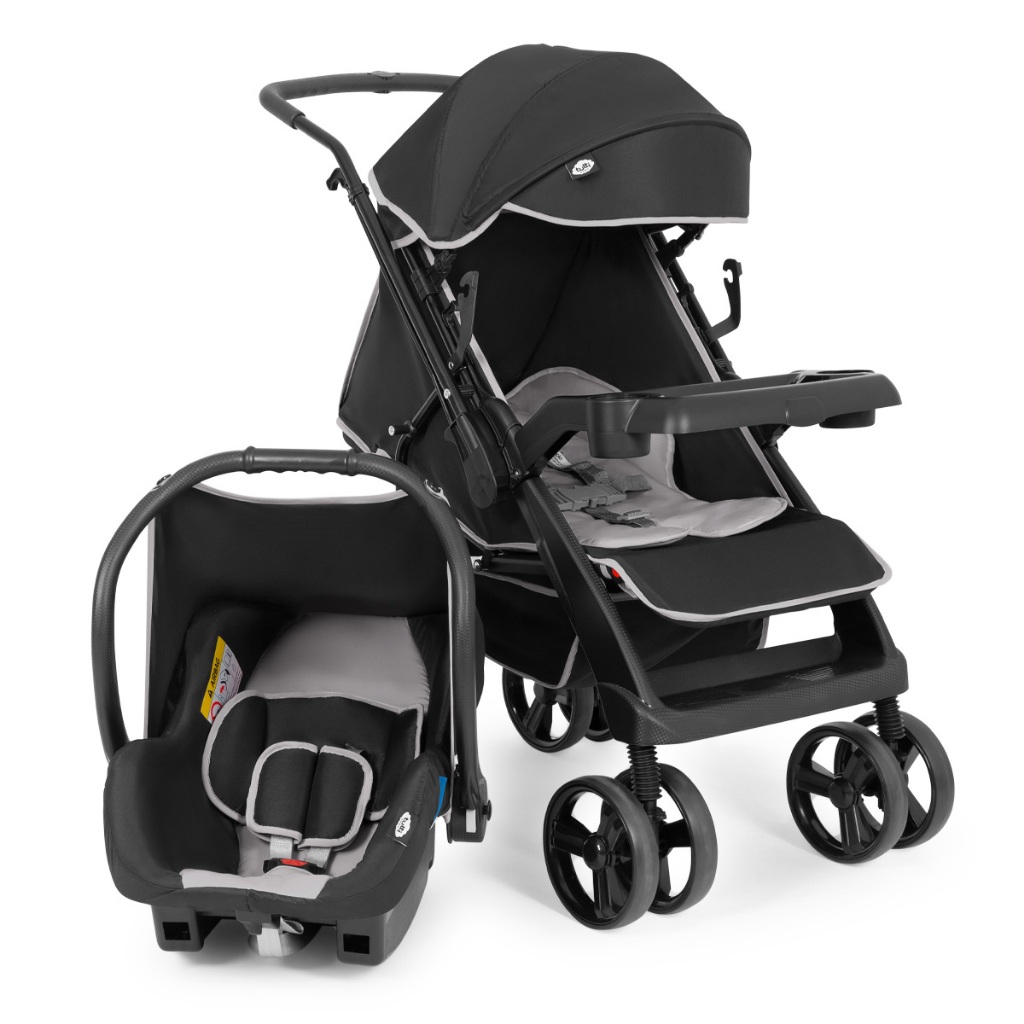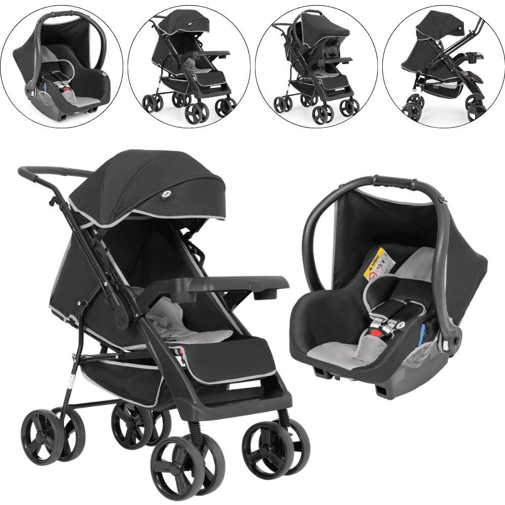 Carrinho De Bebê Berço Com Bebe Conforto Joy Preto e Cinza Tutti Baby