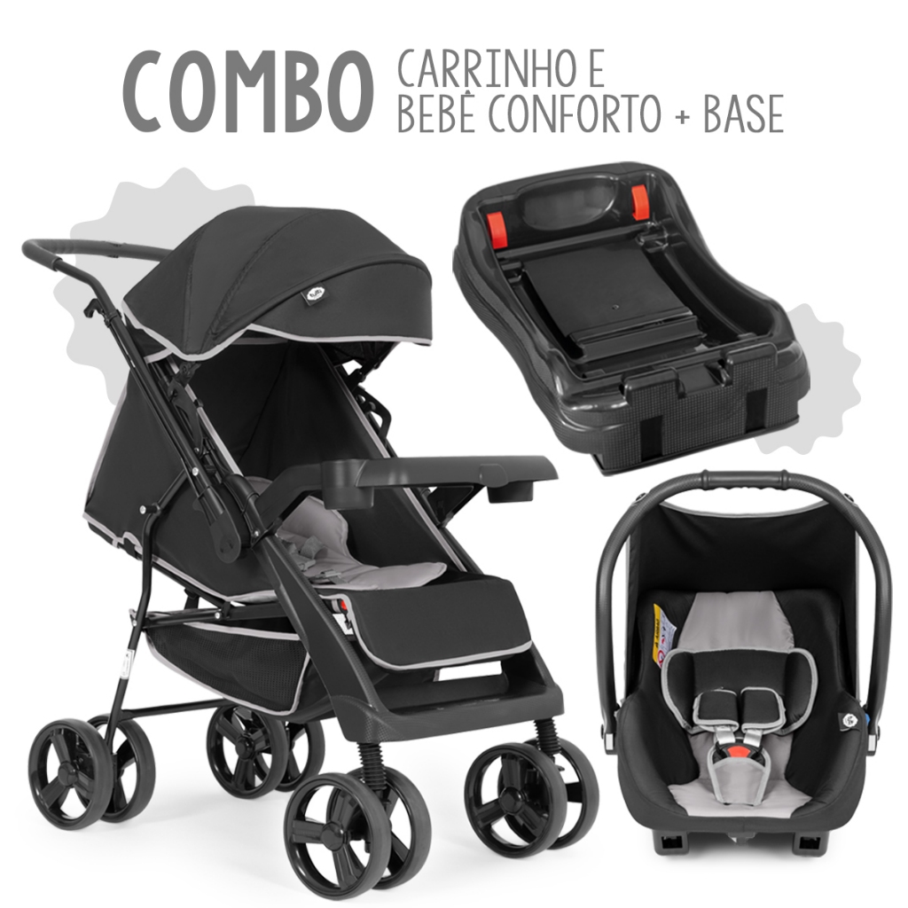 Carrinho De Bebê C/ Bebe Conforto+base Joy Preto Tutti Baby