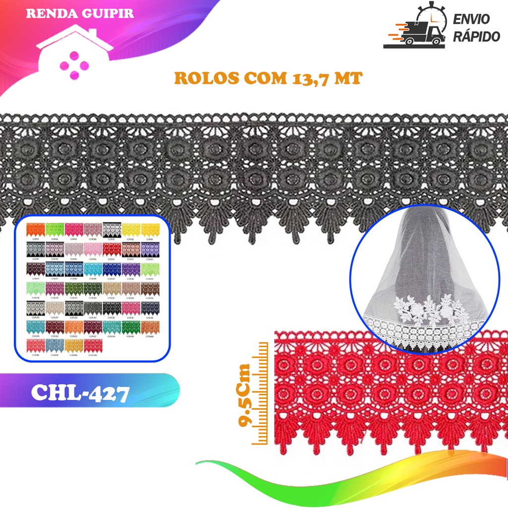 Renda Guipir CHL-427 - 9.5 Cm - Rolo C/13.7 Metros