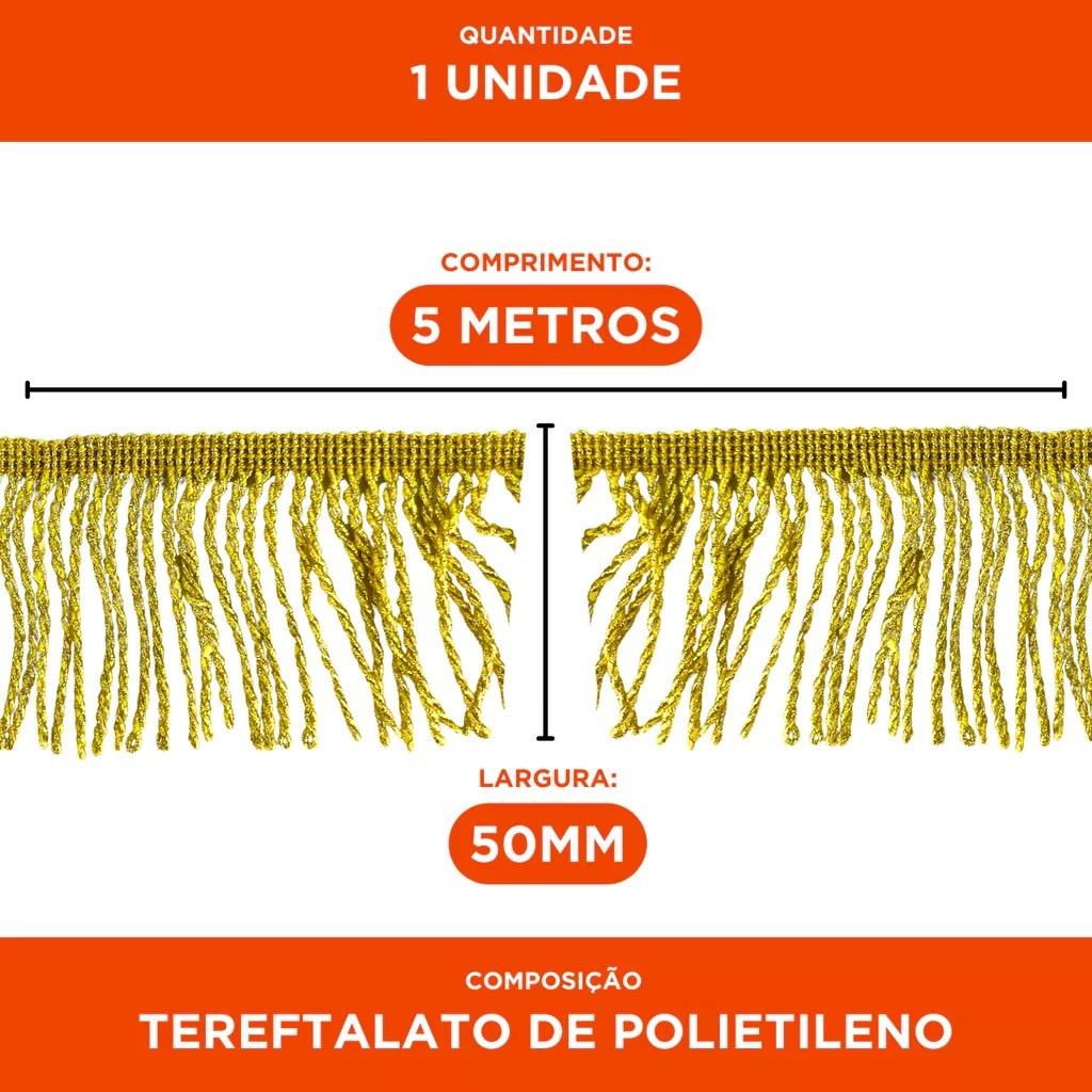 Franja Trançada Passamanaria Dourada - 5Cm - Rl C/ 5 Mts