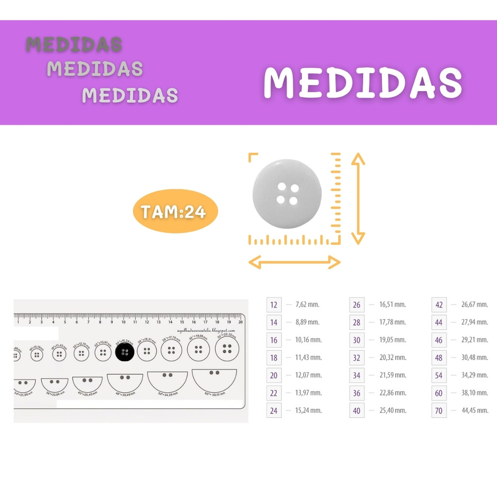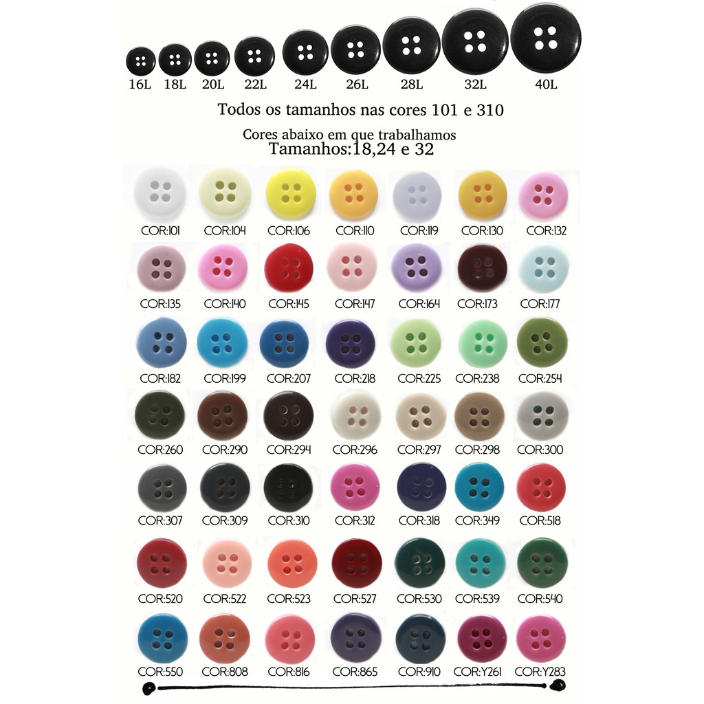 Botão de Camisaria 4 Furos 01485 Tam:24 - Pct c/144 unidades