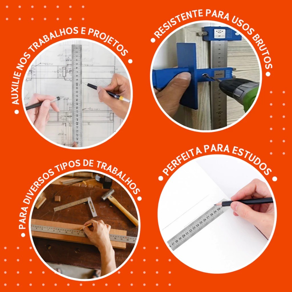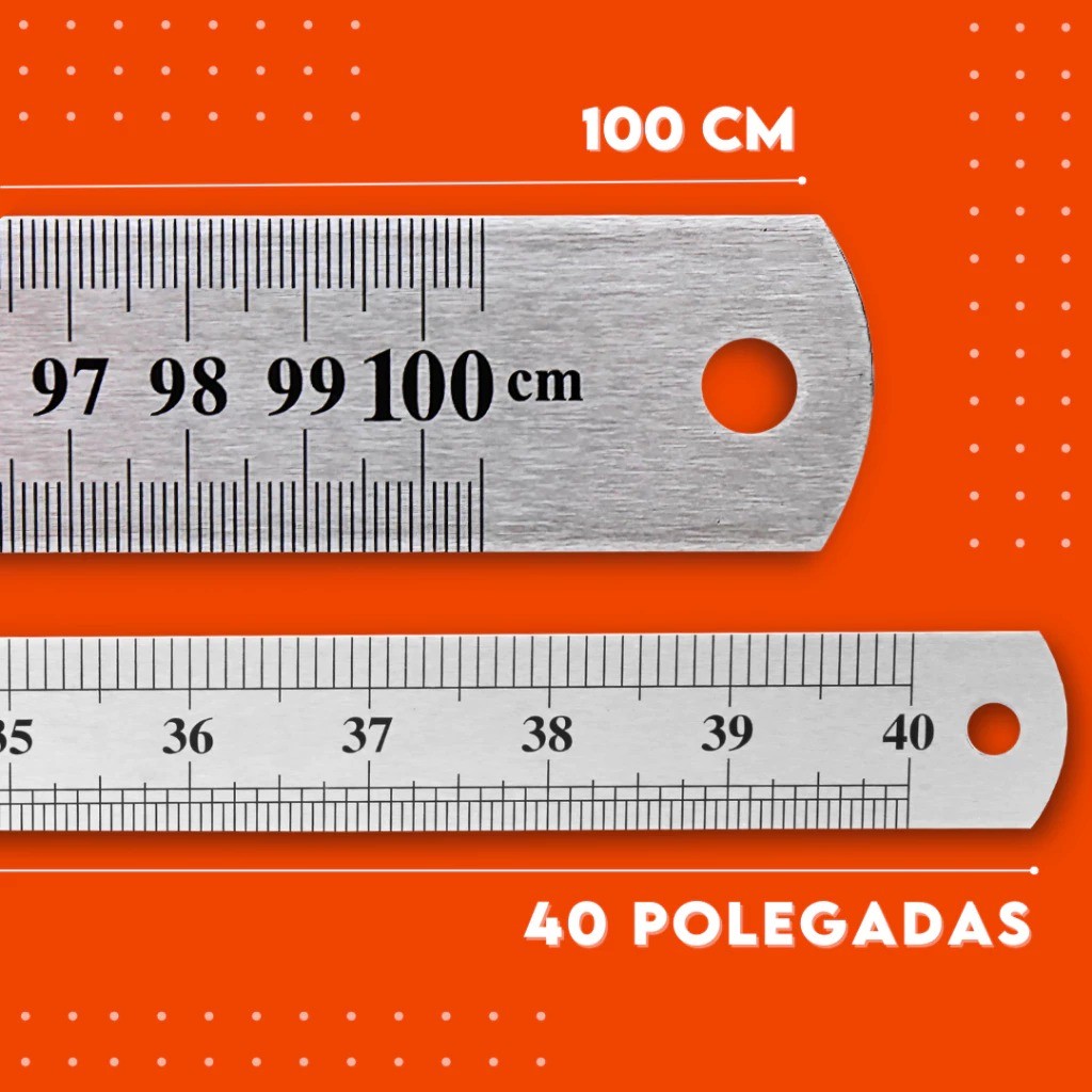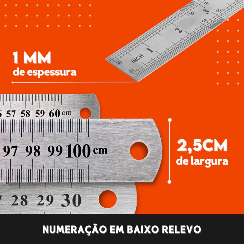 Regua de Aço Metal Inox Dupla Face 30cm/60cm/100cm- Artesanato e Patchwork