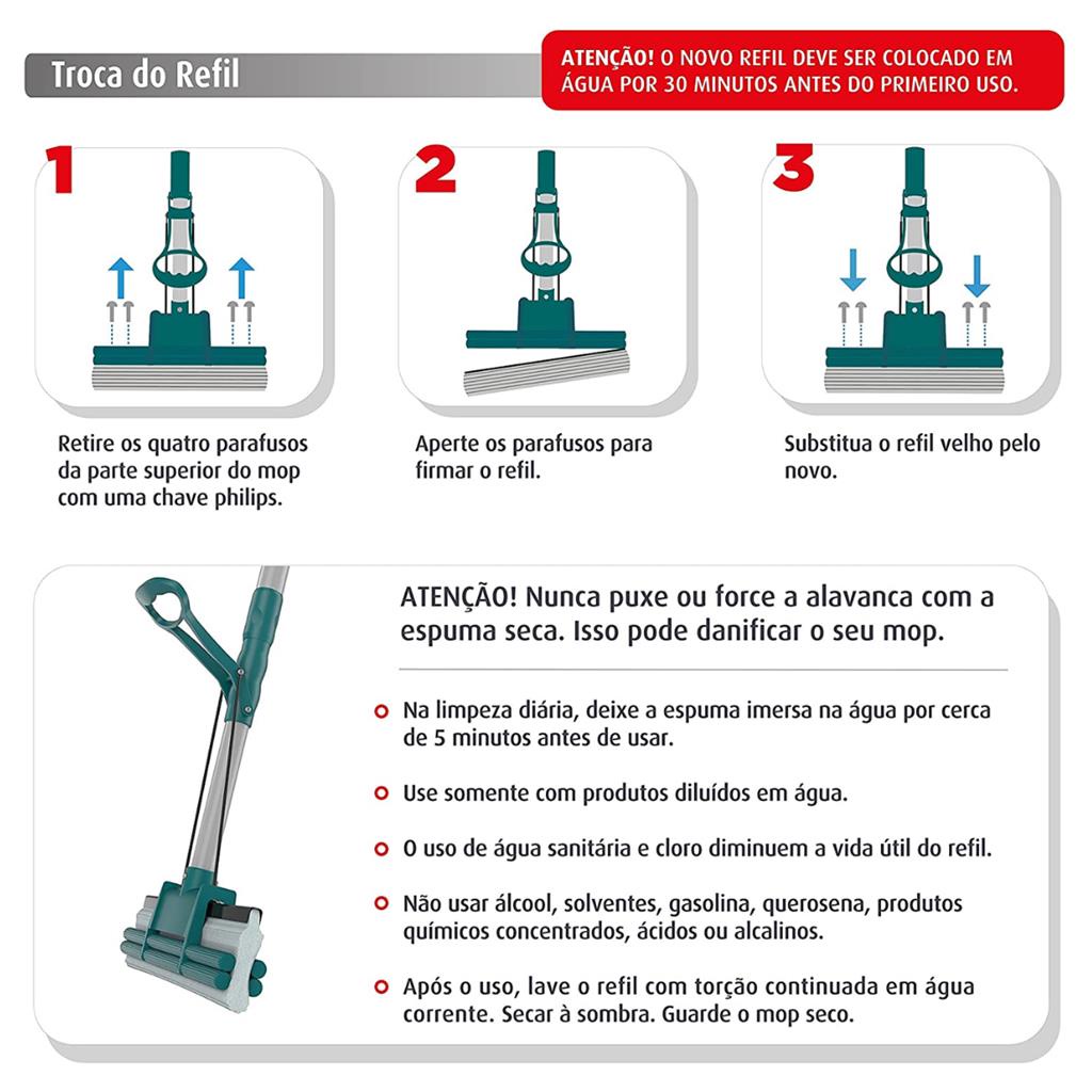 Mop Limpeza Geral Plus MOP7671 Com Refil Extra Flash Limp