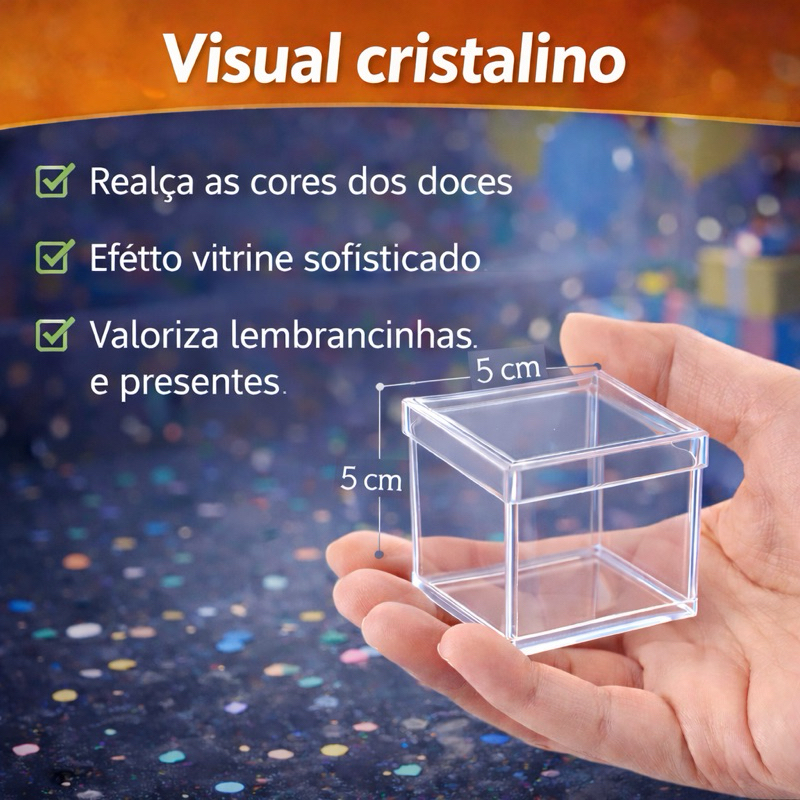 KIT 10/20/30/40/50 e 100 Caixinhas Acrílicas 5x5 cm para Aniversário Lembrancinha