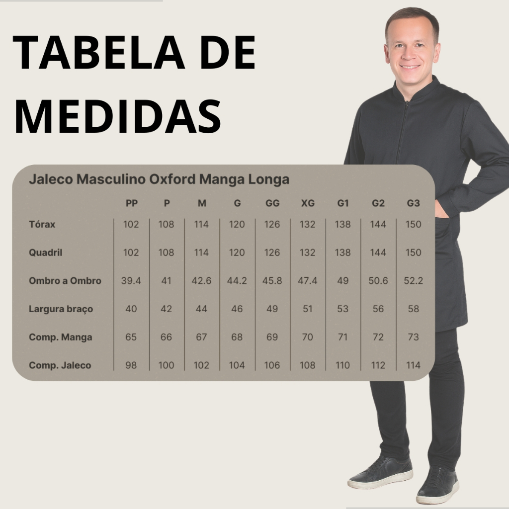 Jaleco Profissional Masculino Gola Padre Manga Longa Oxford Com Zíper Com Punho Varias Cores