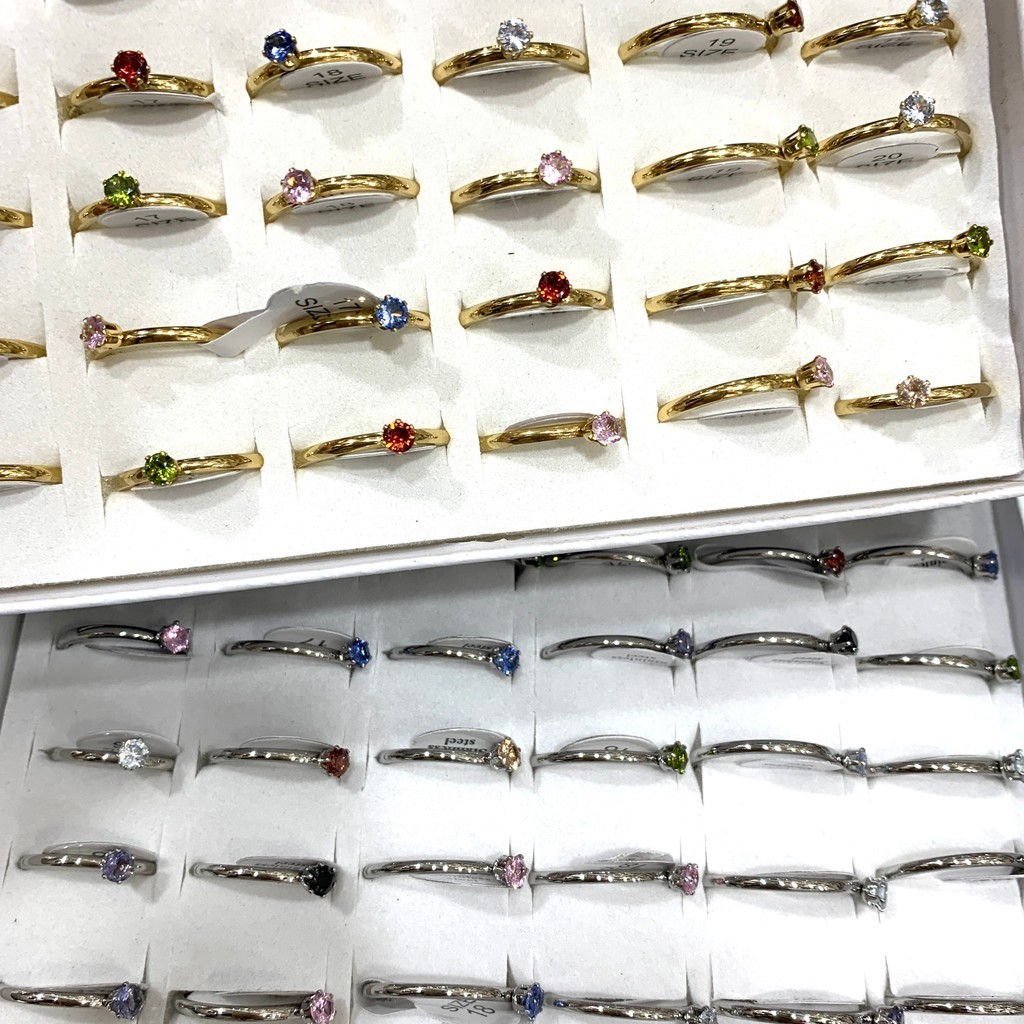 Caixa 36 peças Solitário 2mm Prateado/Dourado com Pedra Colorido Aço Inox, Atacado