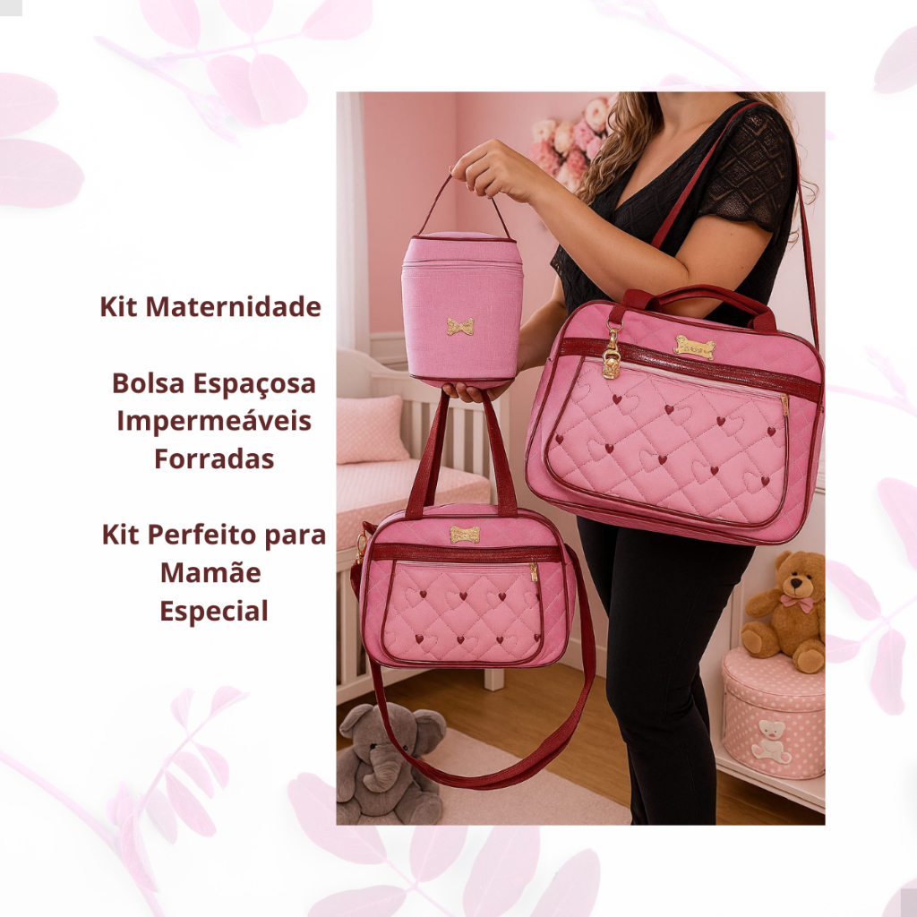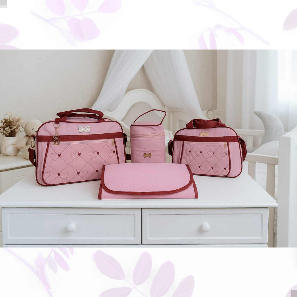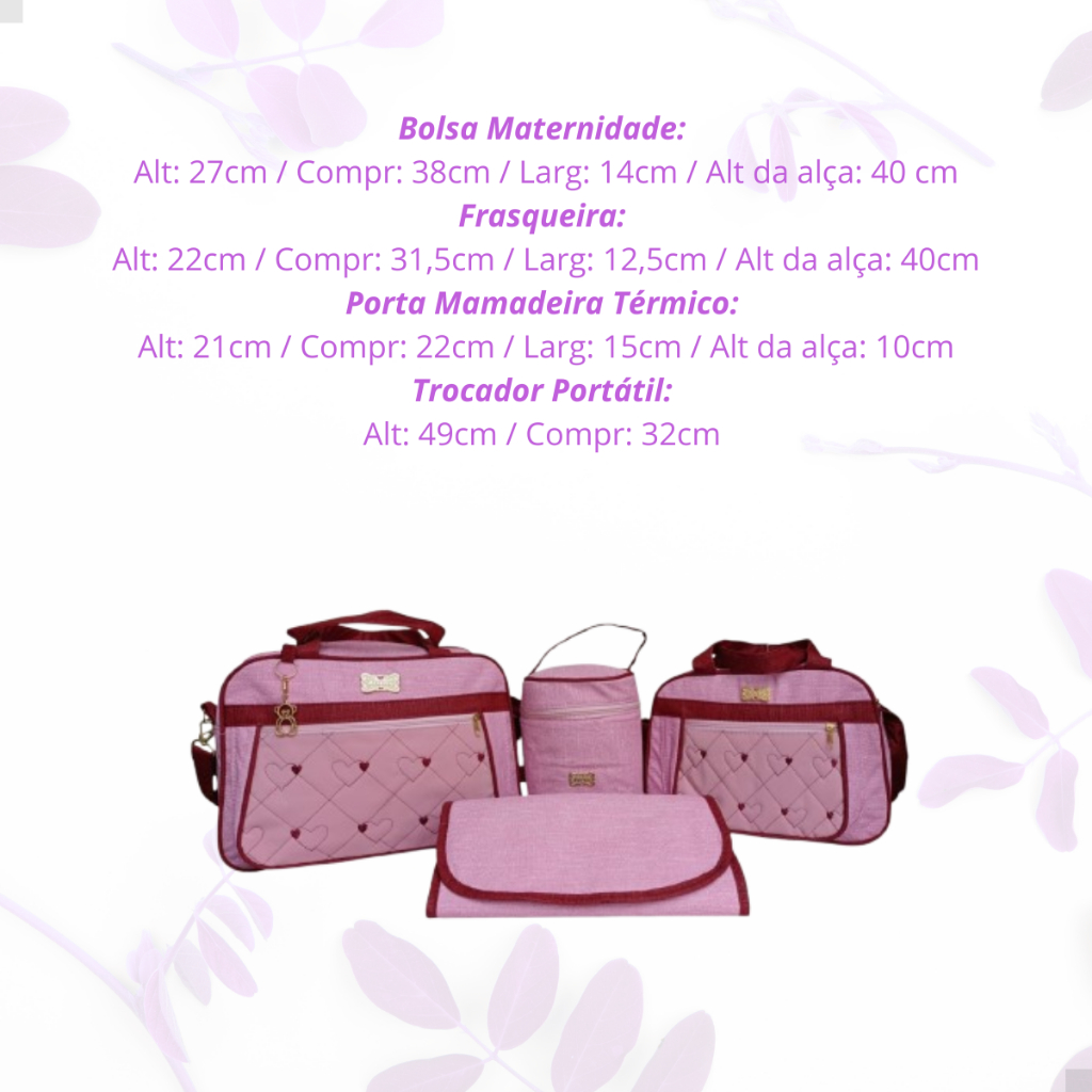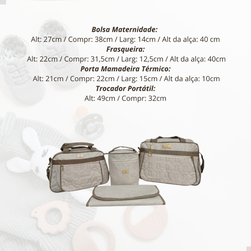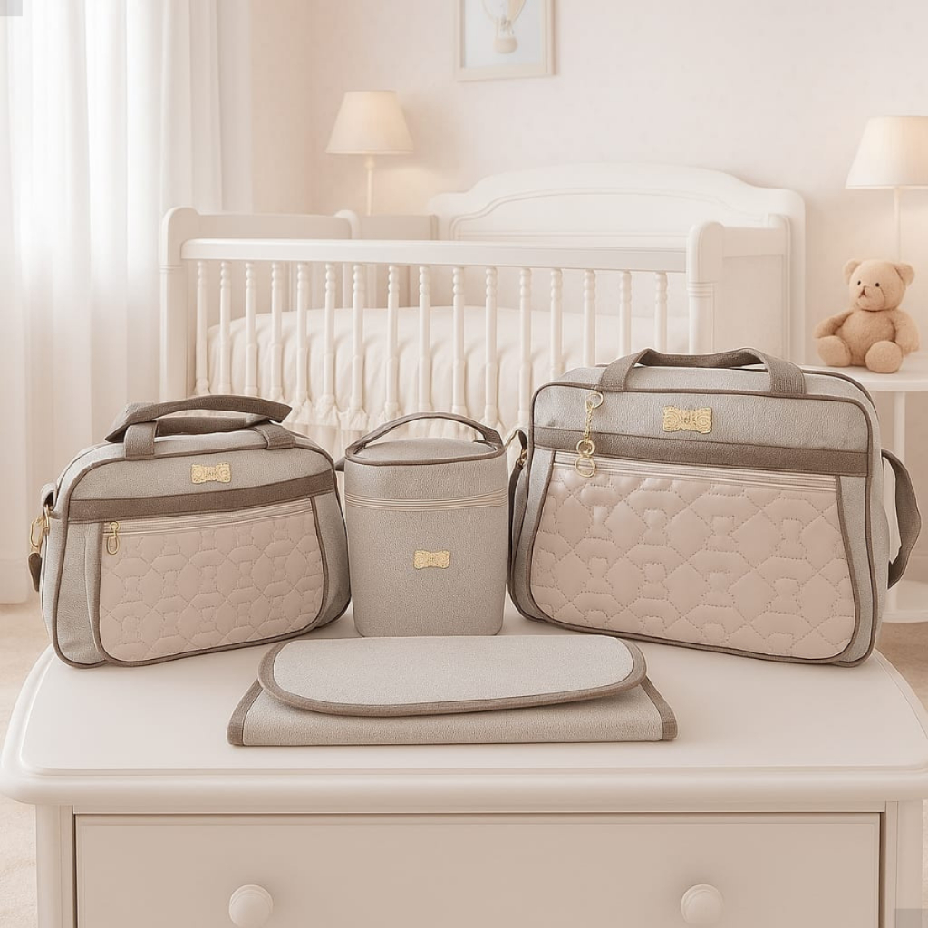 Kit Bolsa Maternidade Frasqueira Porta Mamadeiras e Trocador