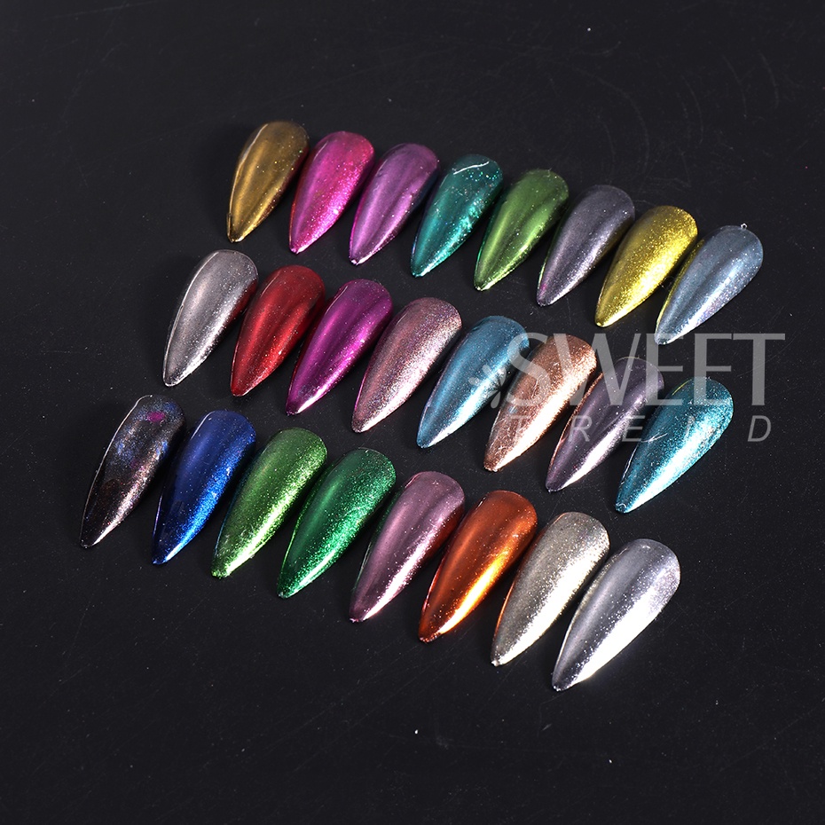 24 Cores Pó De Unhas Metálico Cromado Efeito Espelho Mágico Esfregão UV Gel Polidor Pigmento Manicure Em Flocos