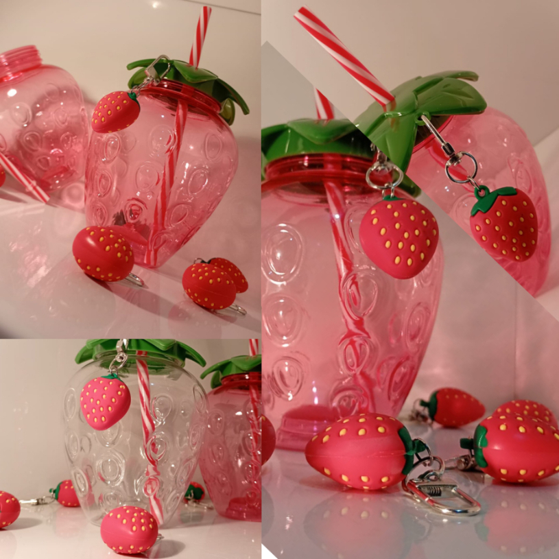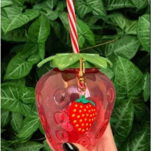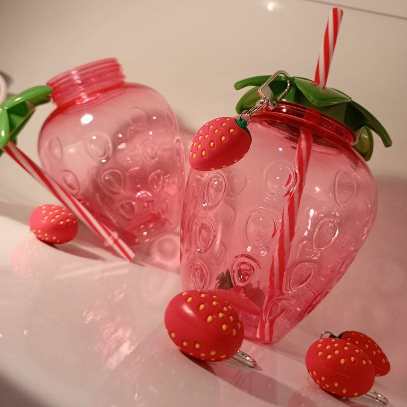 Copo Morango com chaveiro Kawaii Divertido Asthetic 500ml Summer ideal para dar de presente