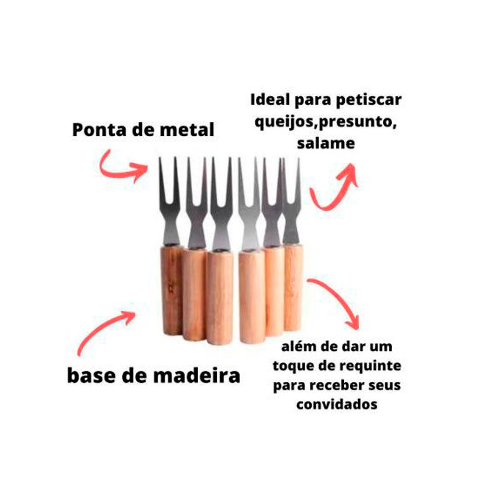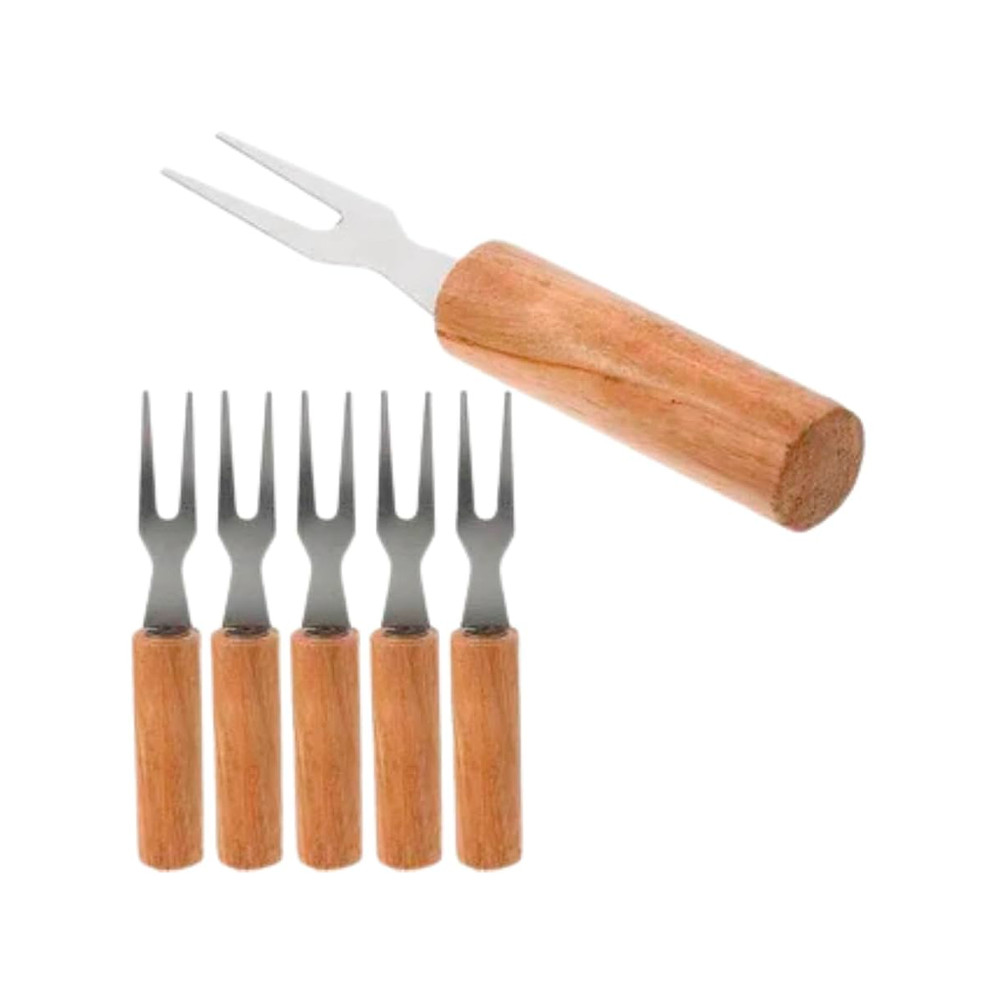 Kit 6 Mini Garfos de Madeira Para Petiscos Churrasco