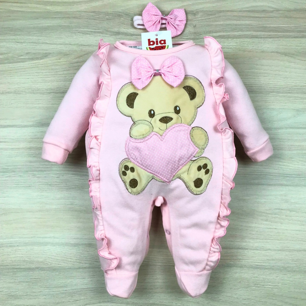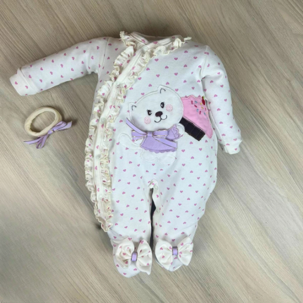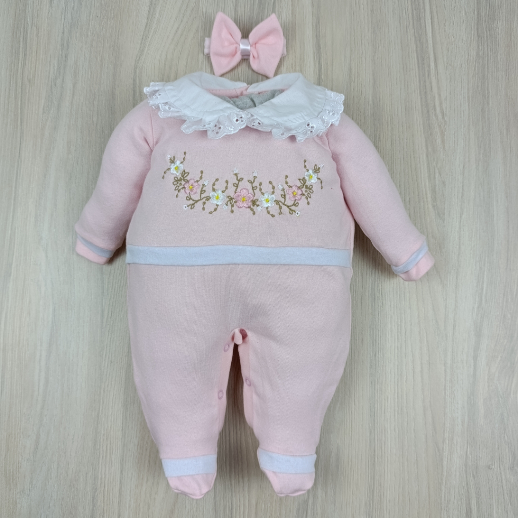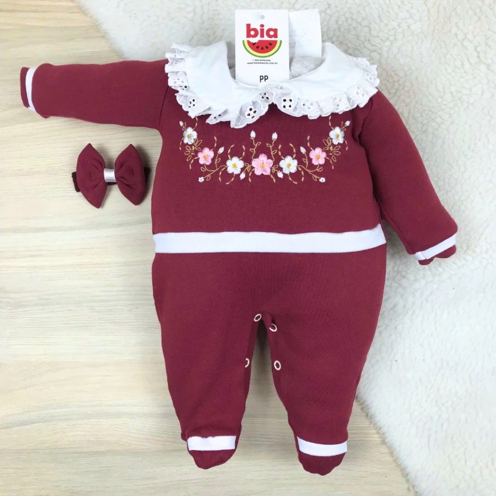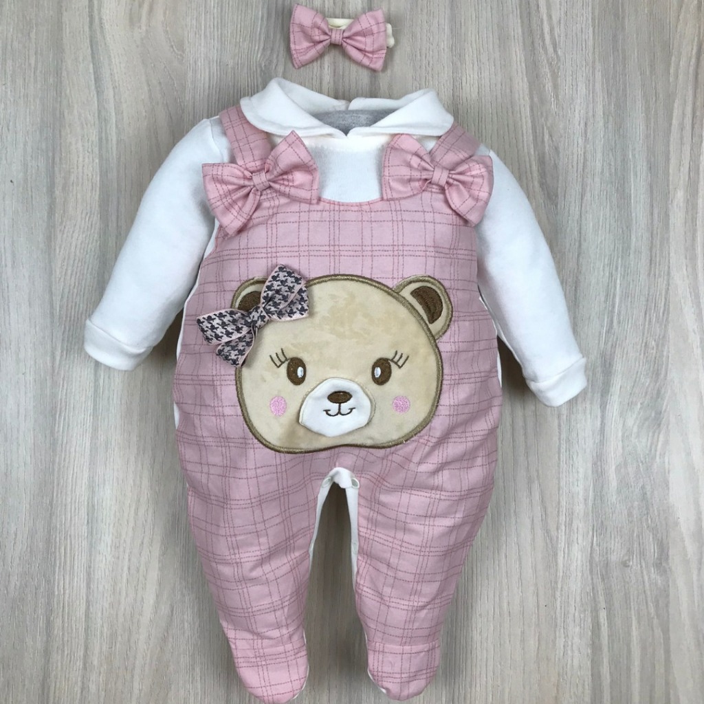 Macacão bebê menina bordado manga longa modelos variados