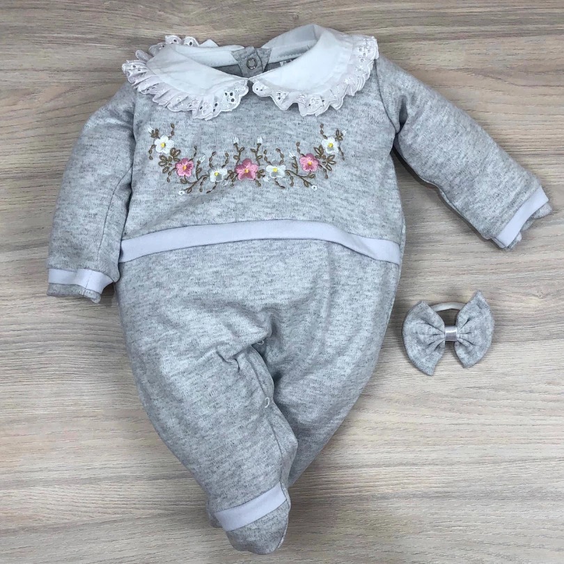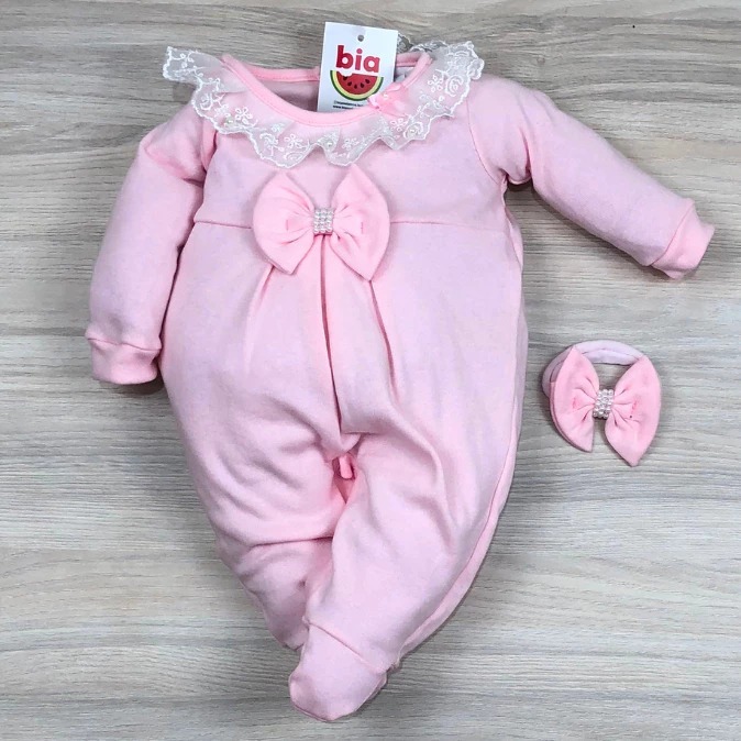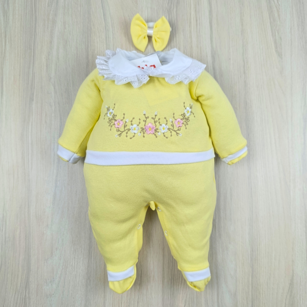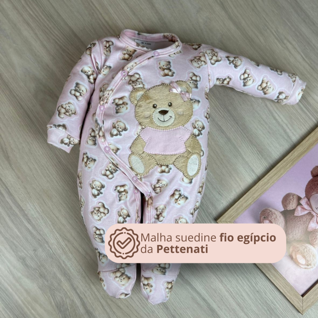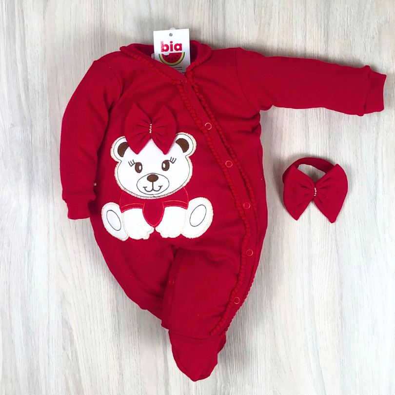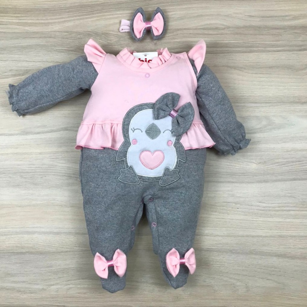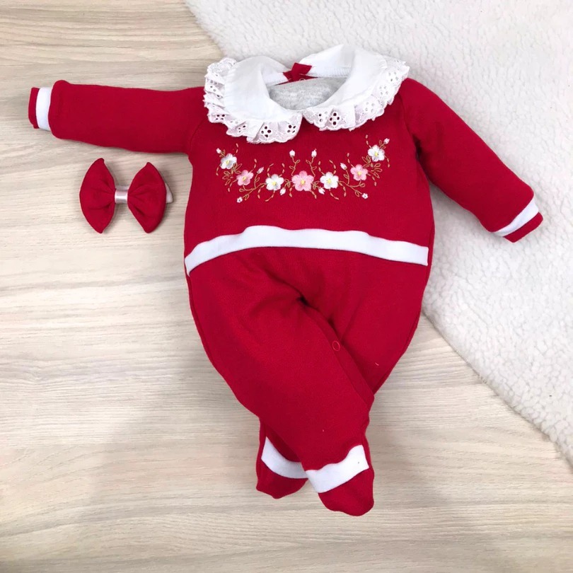 Macacão bebê menina bordado manga longa modelos variados