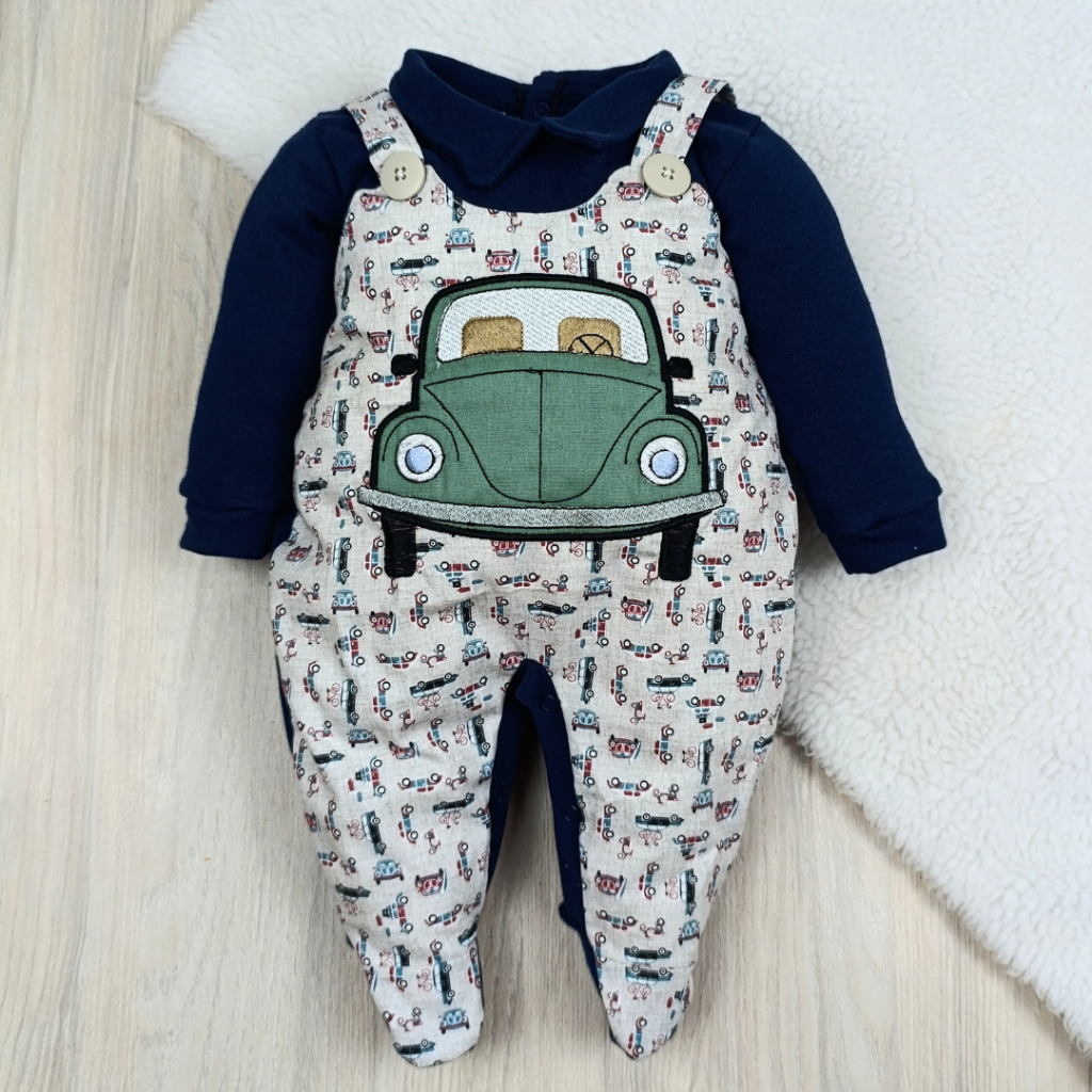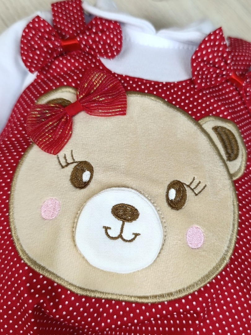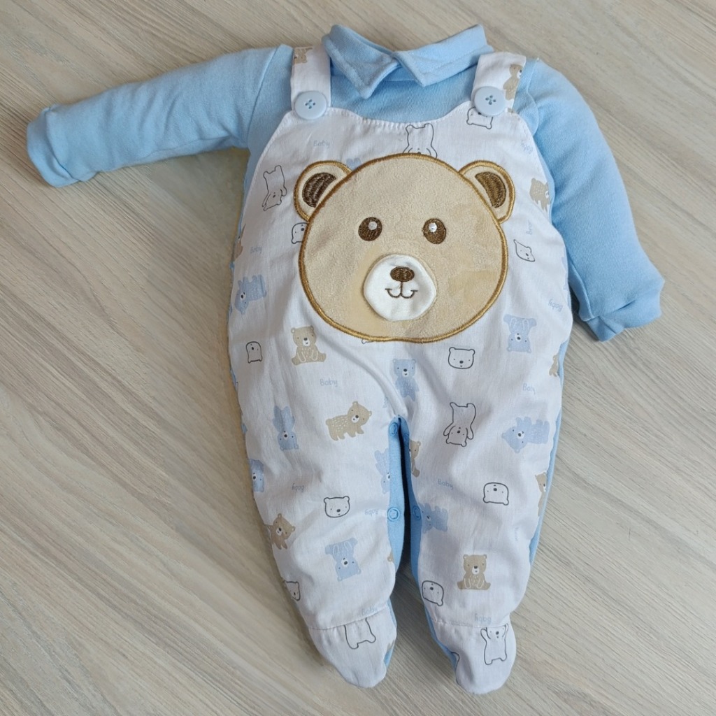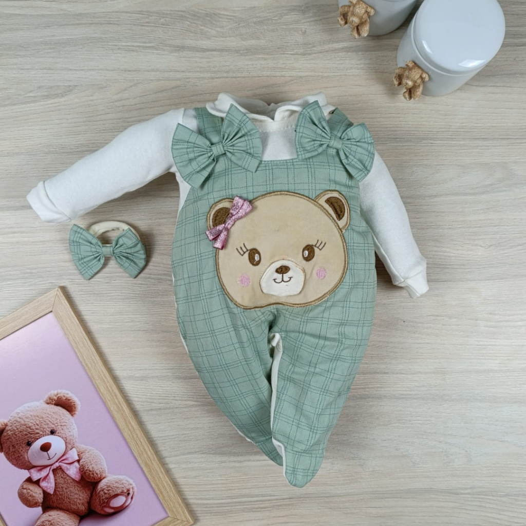 Macacão bebê menina e menino jardineira com laço bordado confortável
