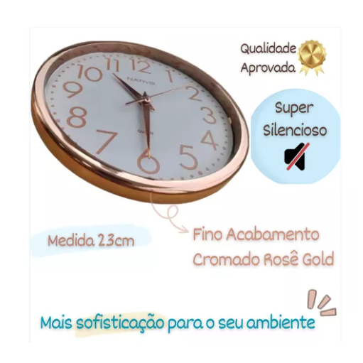 Relógio De Parede Metalizado Redondo Analógico Nativo