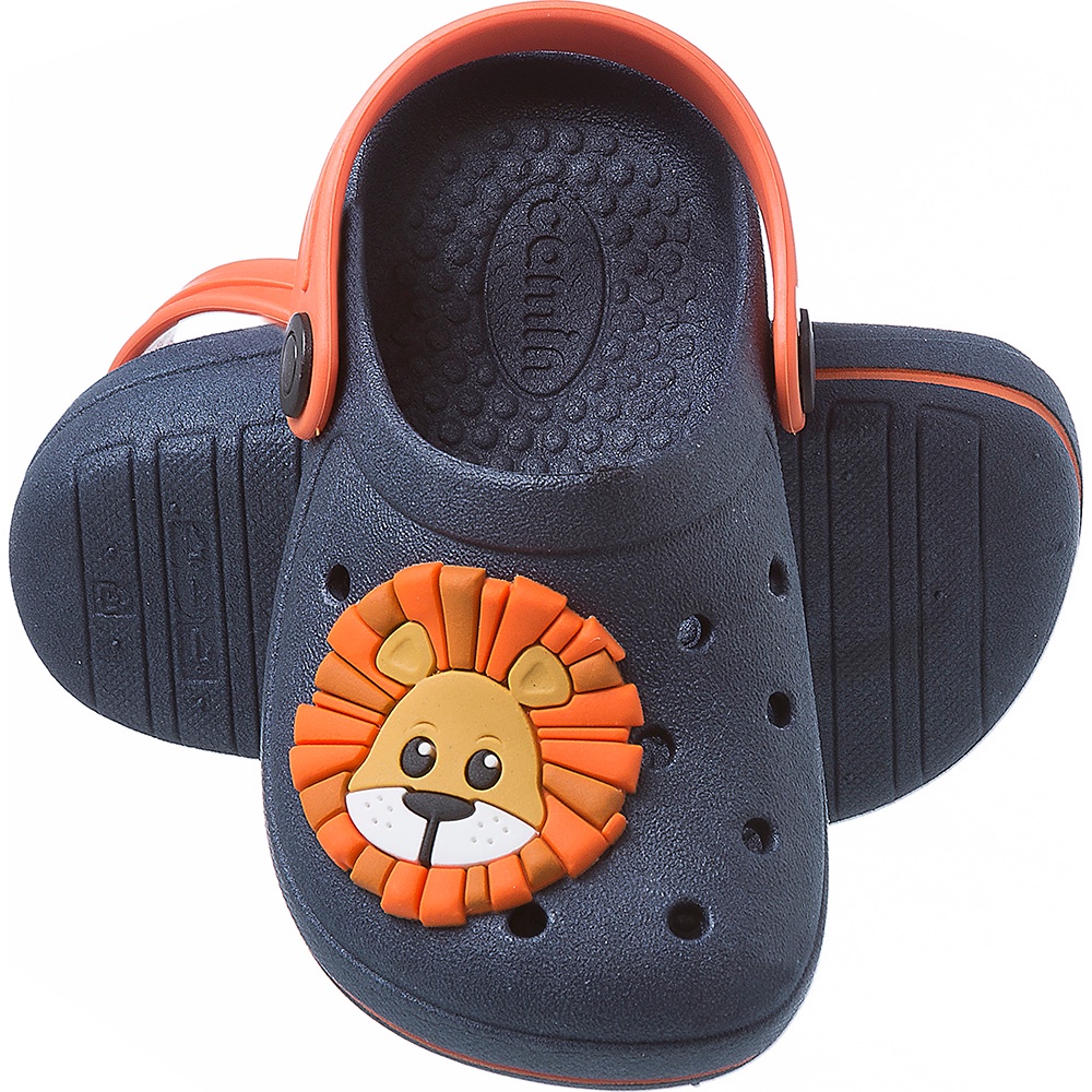 Chinelo Babuche Infantil Menino Marinho Laranja Personagem Leão Camin
