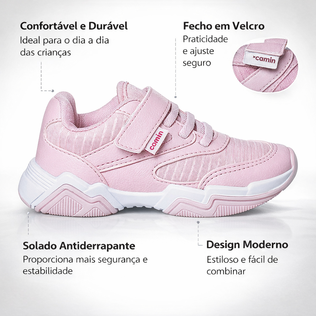 Tênis Infantil Menina Escolar Antiderrapante Macio Feminino Fechamento Fácil Original Camin Promoção