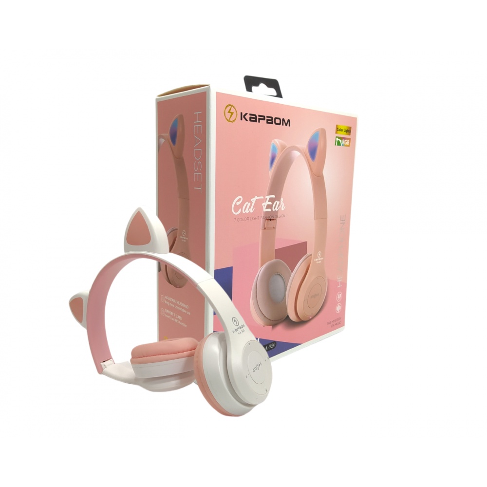 Fone de Ouvido Kapbom Bluetooth Orelha de Gatinho Luz LED Headphone Sem Fio KA-920