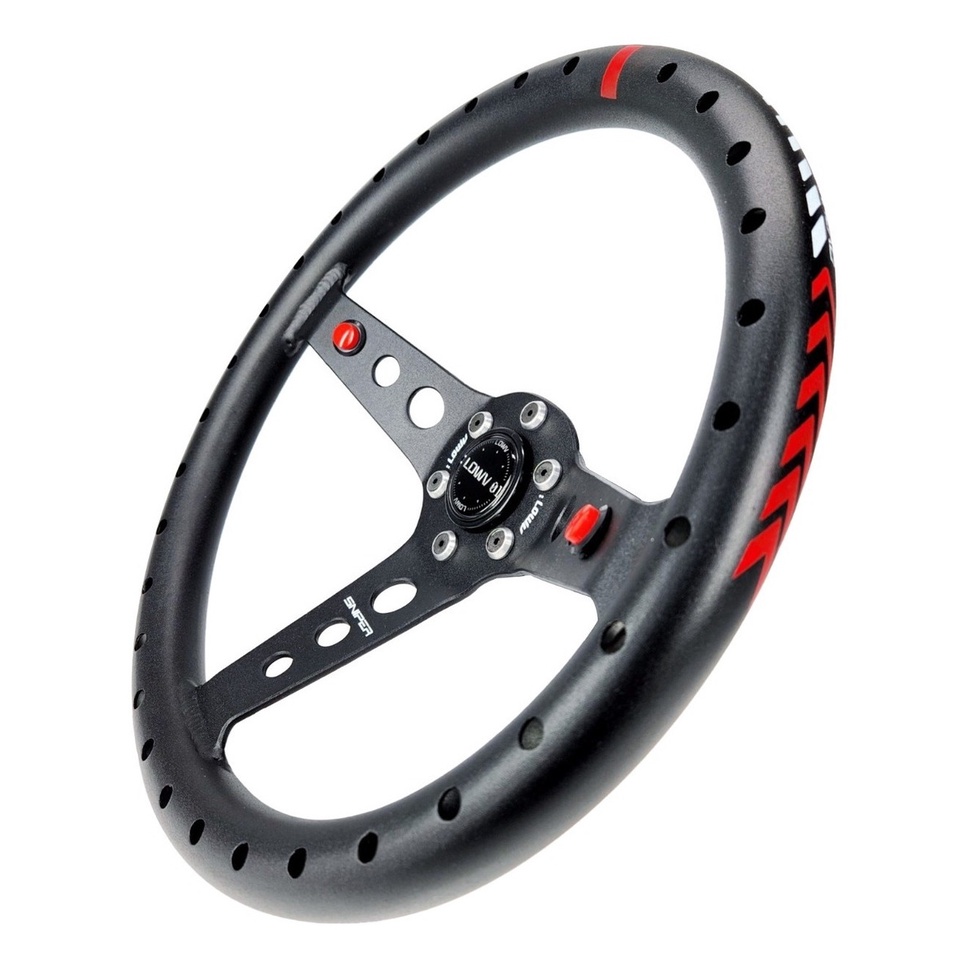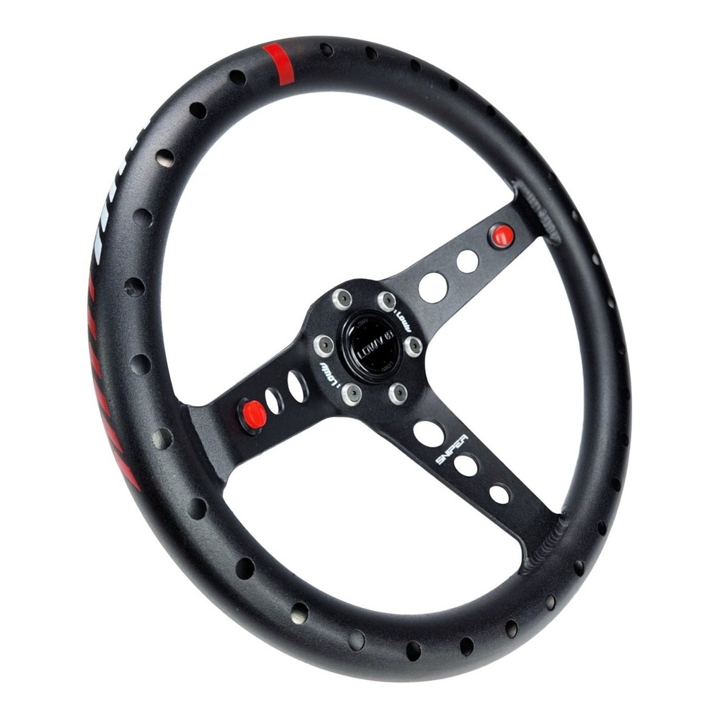 Volante Esportivo Lowv Sniper Alumínio / Tarja Vermelha / Alumínio Preto + Cubo