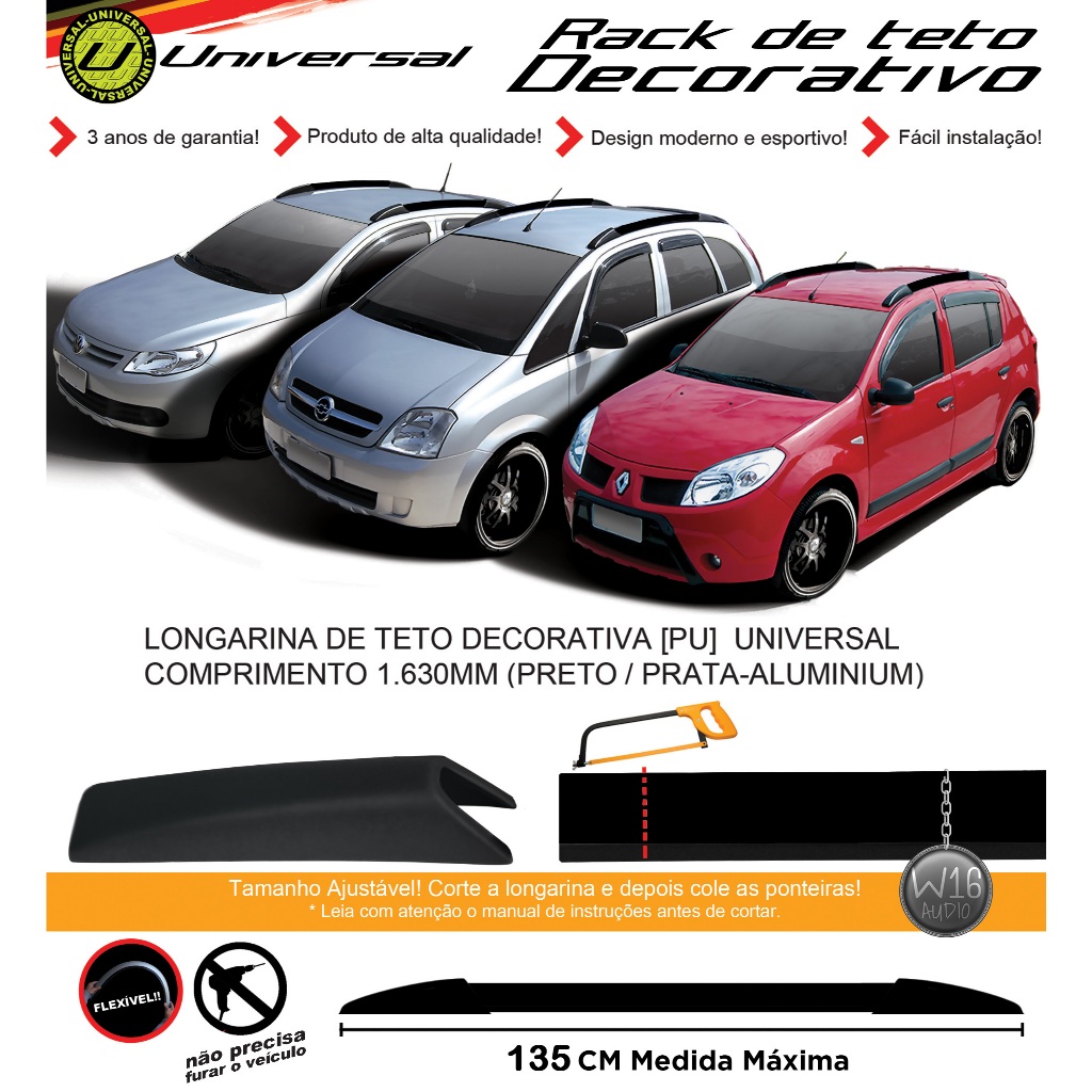Rack Longarina De Teto Decorativo Slim Universal 1,35m Tg Poli Preto
