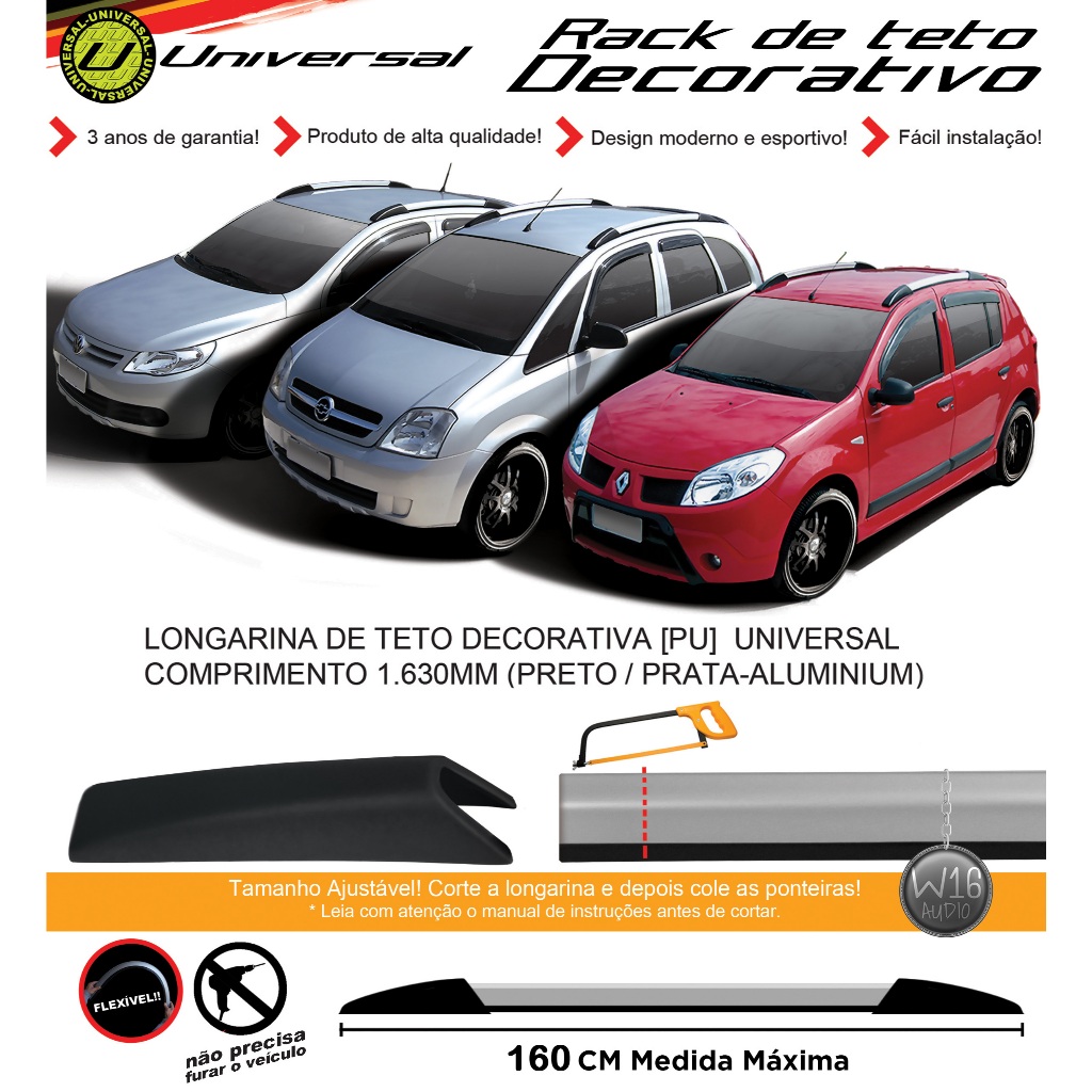 Rack Longarina de Teto Decorativo Universal Slim TG Poli 1,60 Metros Preto