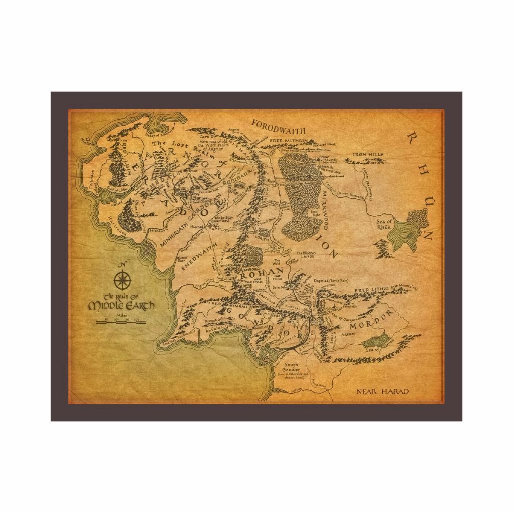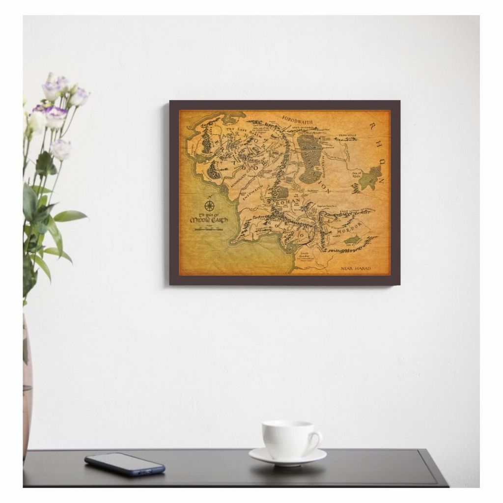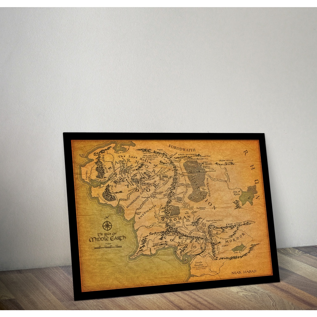 Quadro Decorativo Senhor dos Anéis Mapa da Terra Média com Moldura