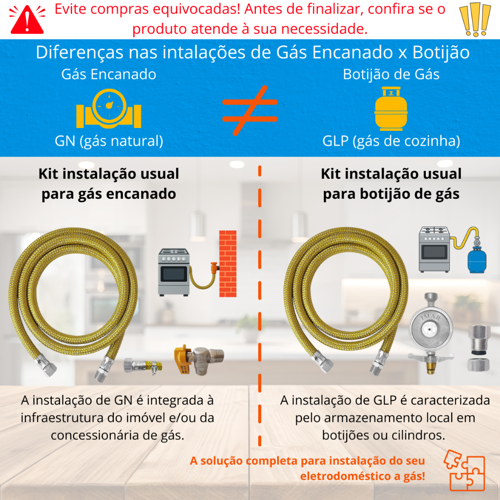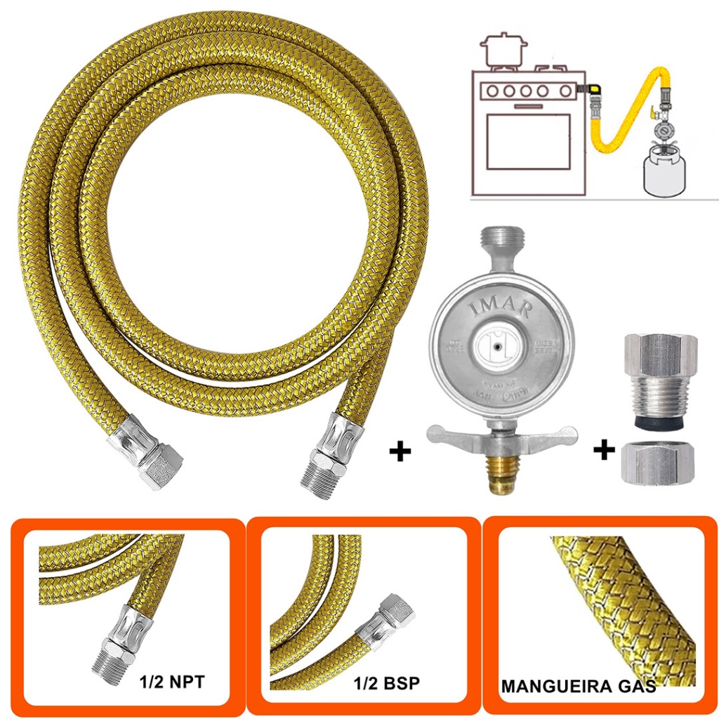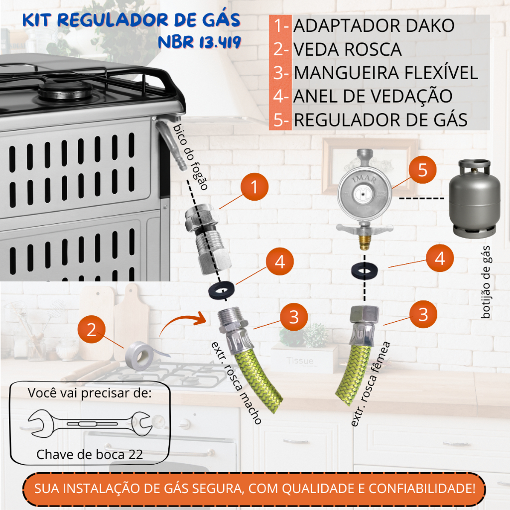 Kit Instalação Gás Encanado Botijão + Registro Regulador 1kg + Adaptador para Cooktop Forno Fogão
