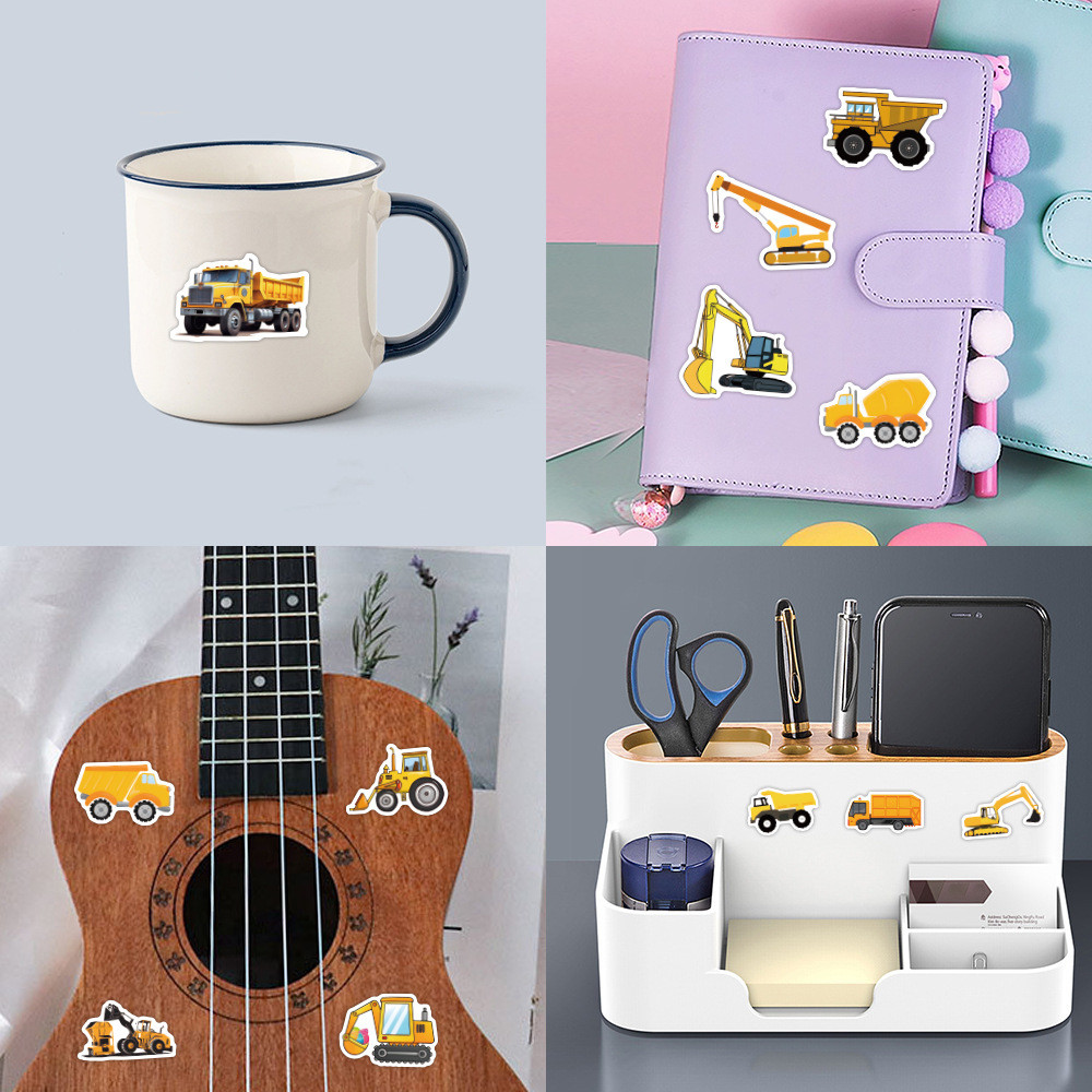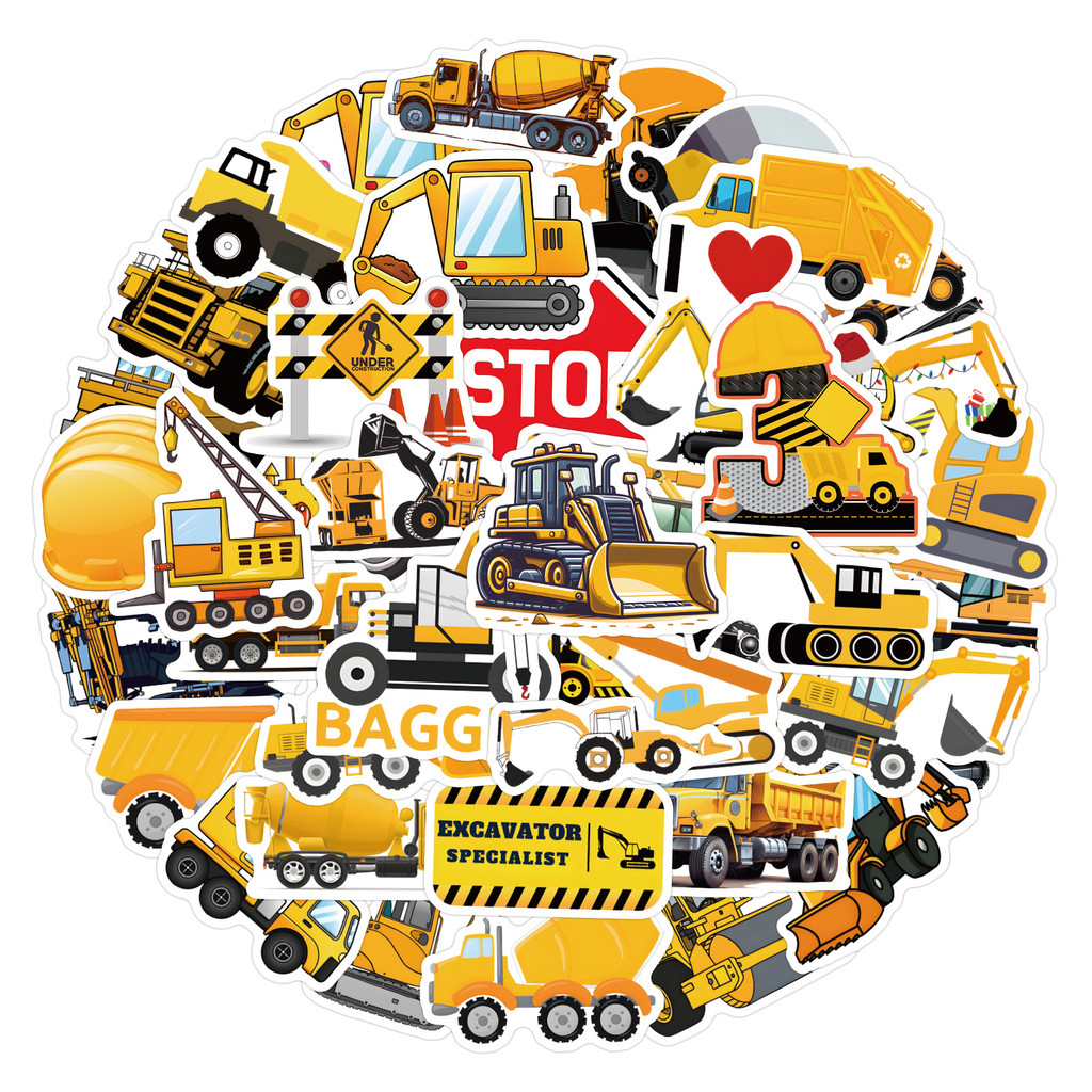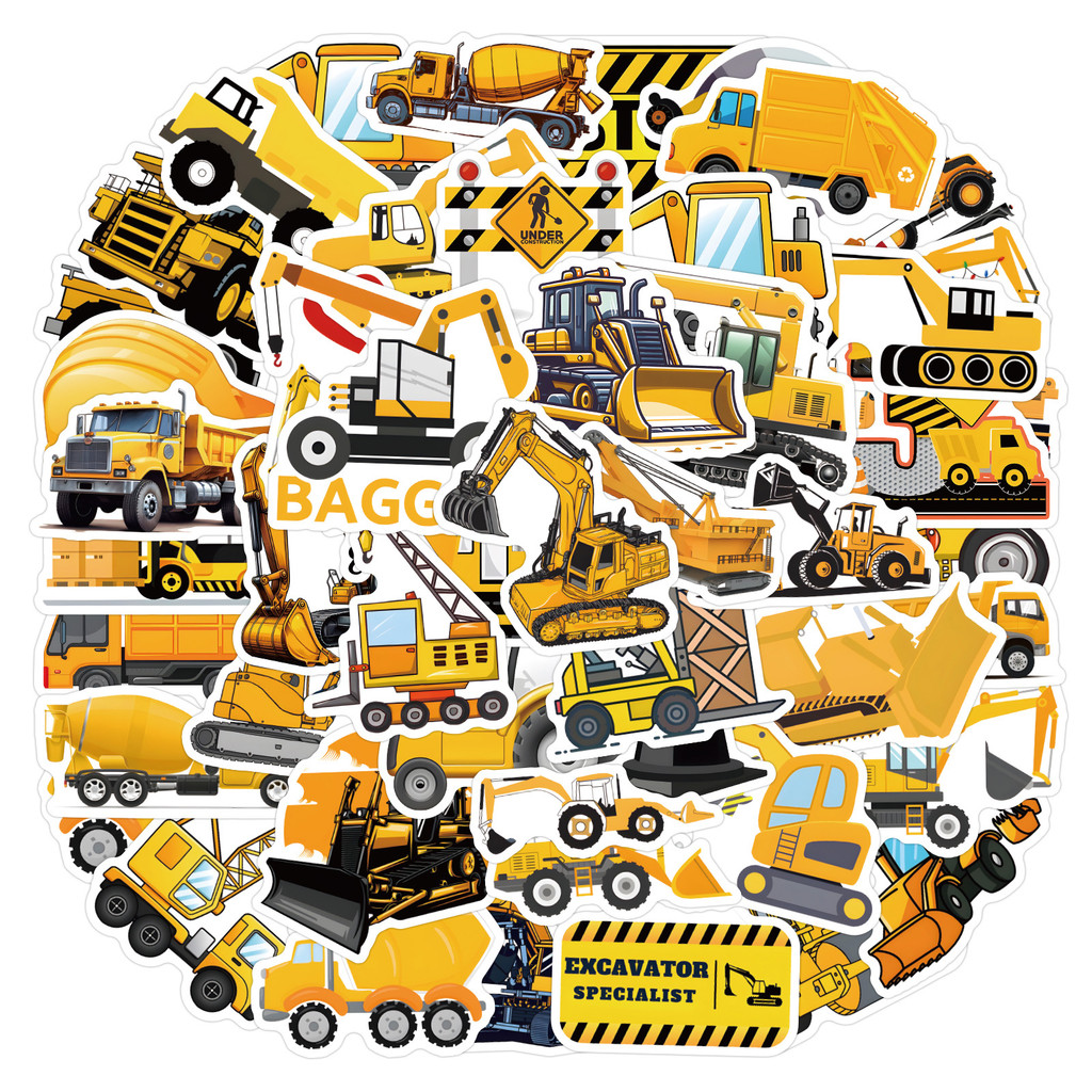 55 Peças De Adesivos De PVC À Prova D'água De Desenhos Animados De Escavadeiras