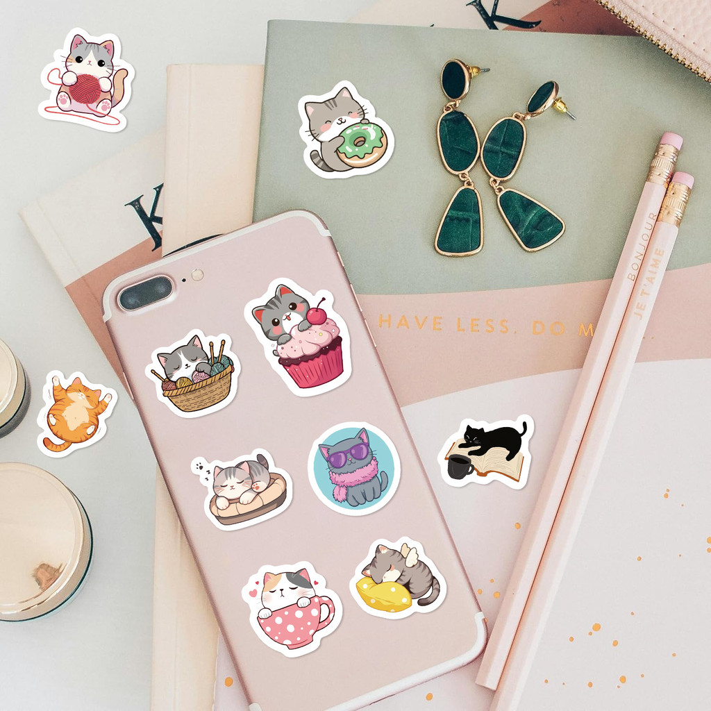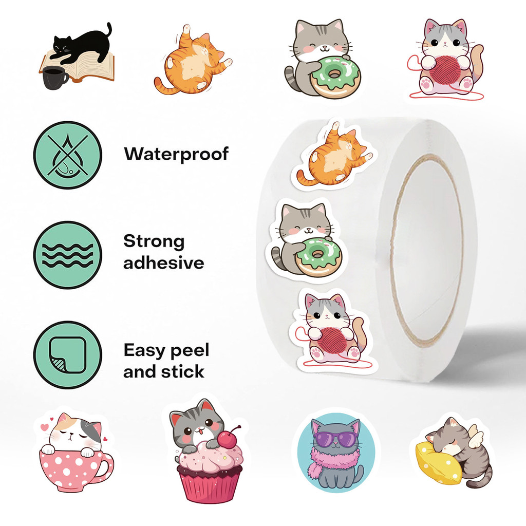 500 Peças 10 Imagens Bonito Desenho Animado Gatinho Gatos Adesivos Rolo/Fita Adesiva