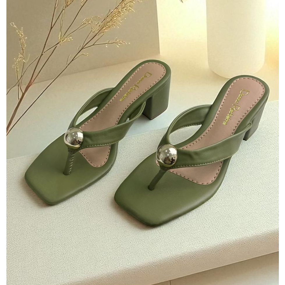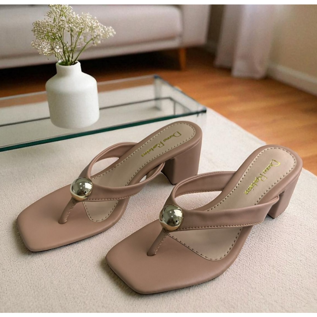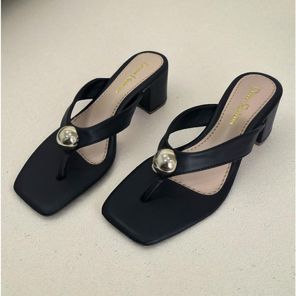 Sandália feminina tamanco de salto grosso salto bloco Tamanco com enfeite Ref 212