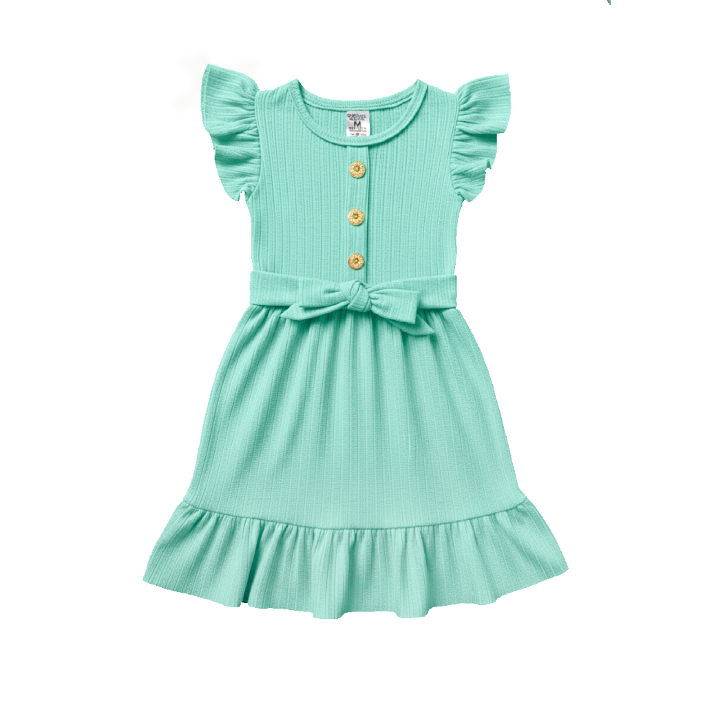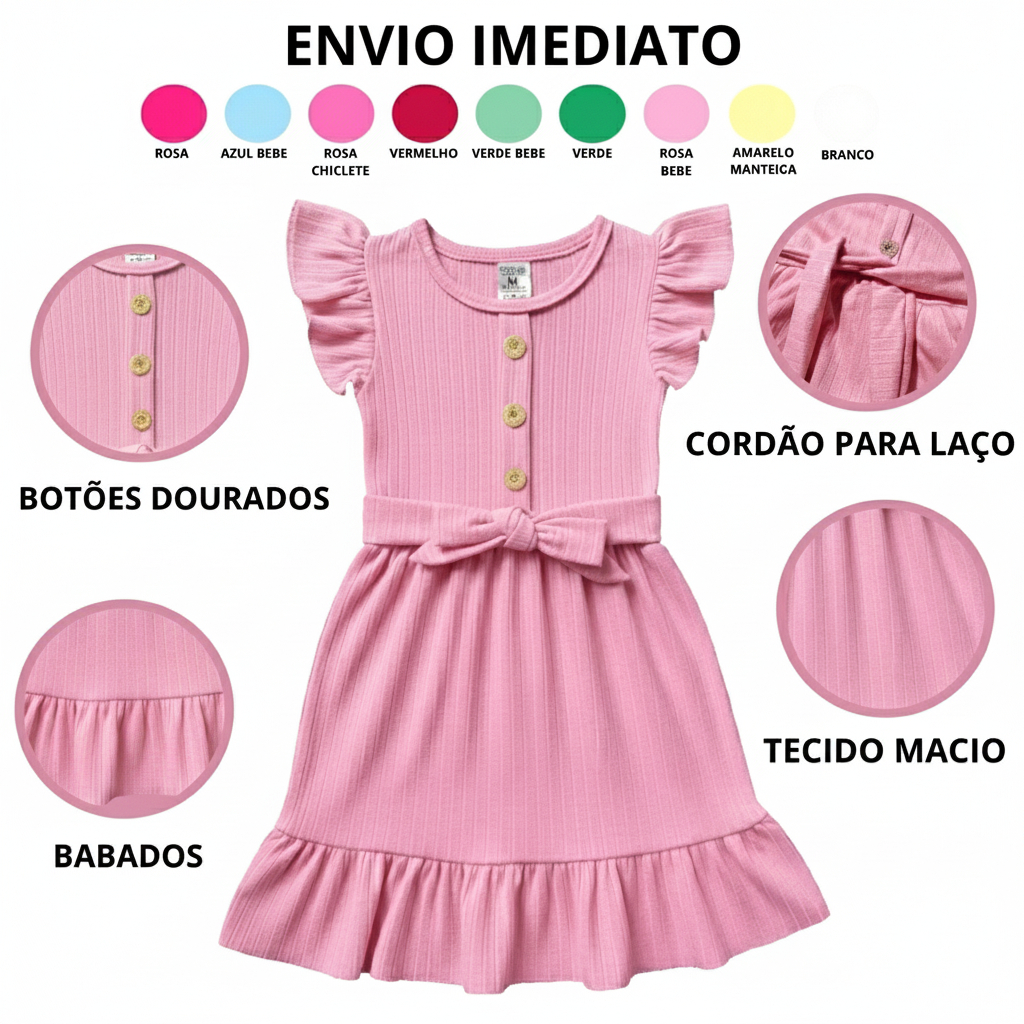 Vestido Infantil Menina Casual Verão✨Cordão Laço e Botões Confortável Macio Elegante Igreja Passeios usar com sandalia..