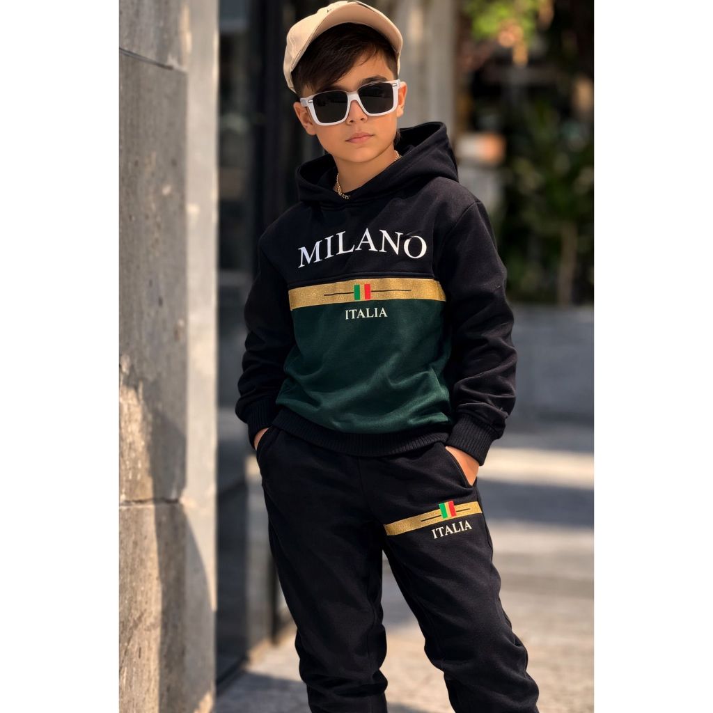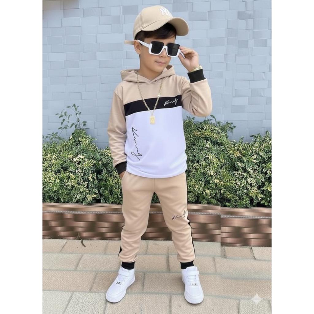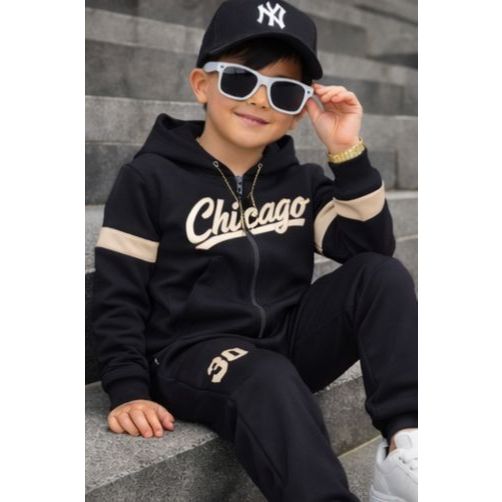Conjunto Infantil Menino Casaco com Capuz e Calça Inverno Estiloso 2 a 12 Anos